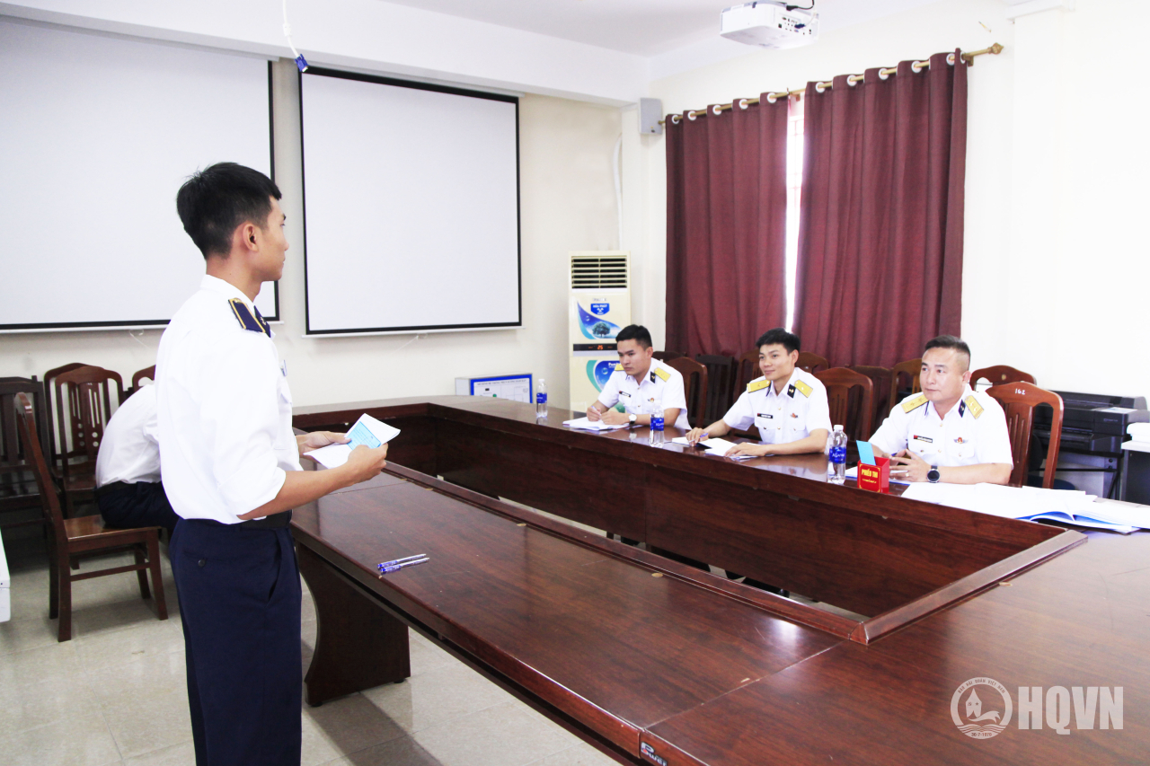 Nội dung kiểm tra tập trung vào việc nắm kiến thức về tổ chức biên chế của ngành, tàu thực tập; chức trách, nhiệm vụ trưởng ngành tàu mặt nước chiến đấu theo điều lệnh tàu Hải quân nhân dân Việt Nam; công dụng, thành phần, tính năng kỹ chiến thuật chính, bố trí các loại trang bị kỹ thuật của ngành trên tàu; quy định các đầu sổ cấp ngành; các căn cứ để soạn thảo giáo án, lập kế hoạch luyện tập chiến đấu ngành, kế hoạch bảo quản dự phòng – kiểm sửa định kỳ và thực hành chức trách theo bảng bố trí chiến đấu.