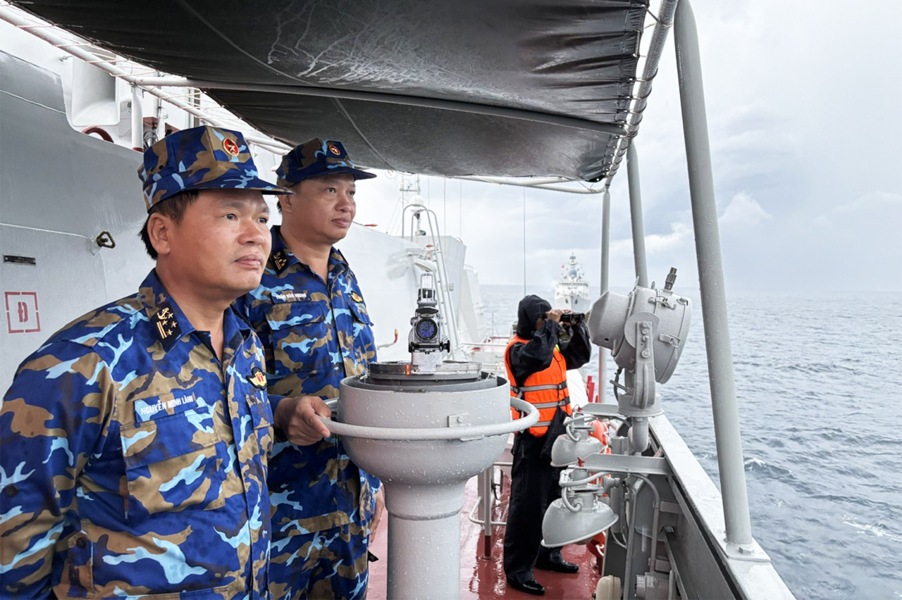 Đại tá Nguyễn Minh Lành và Thượng tá Trần Văn Vương chỉ huy thực binh trên biển