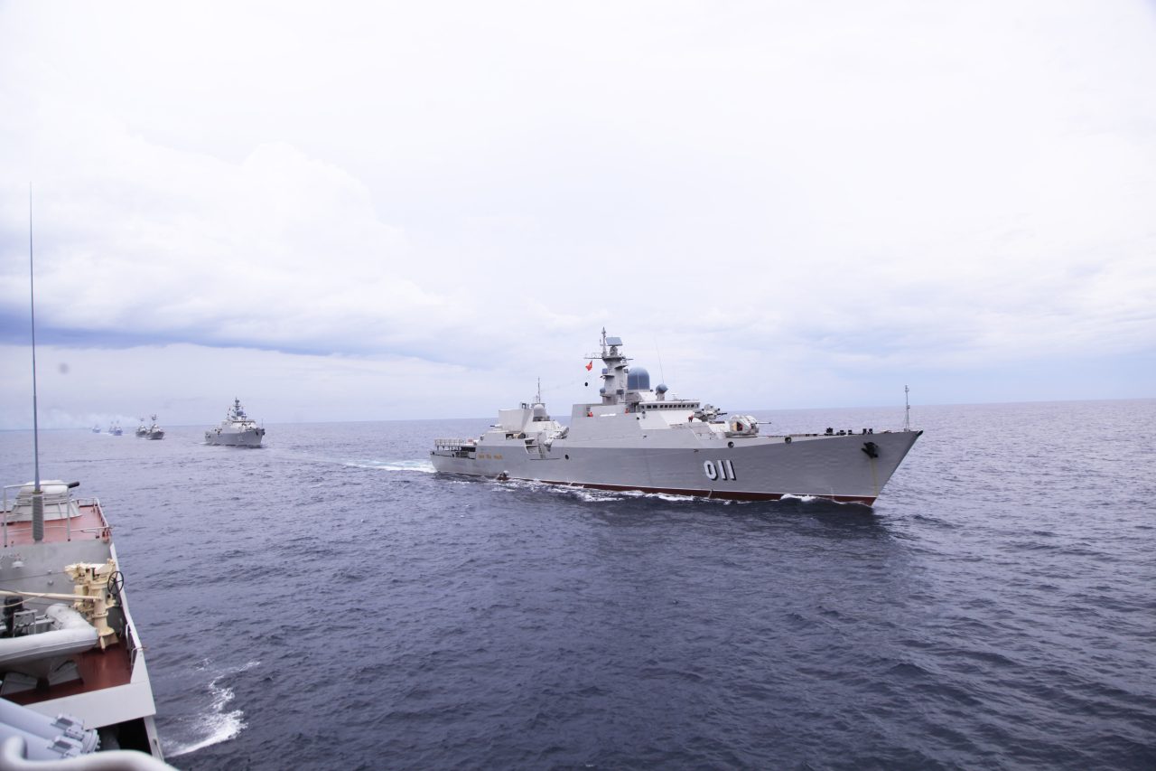 Ngay từ sáng sớm, các tàu trong đội hình chiến đấu của Lữ đoàn 162 đã đồng loạt nhổ neo rời bến, thực hành kiểm tra các nội dung hiệp đồng chiến đấu biên đội như: cơ động trong luồng thuỷ hẹp, tầm nhìn xa hạn chế; chiến đấu đối không, đối hải; đấu tranh bảo vệ sức sống tàu…