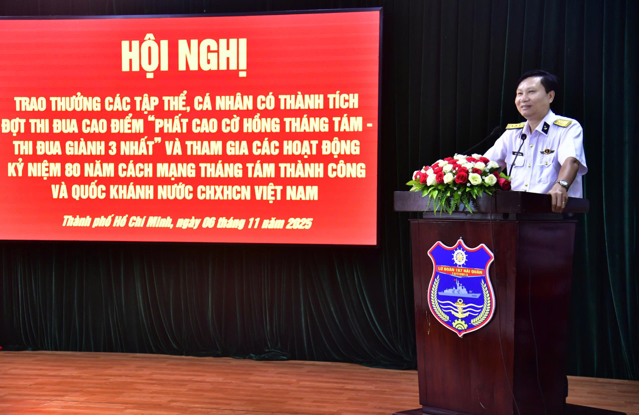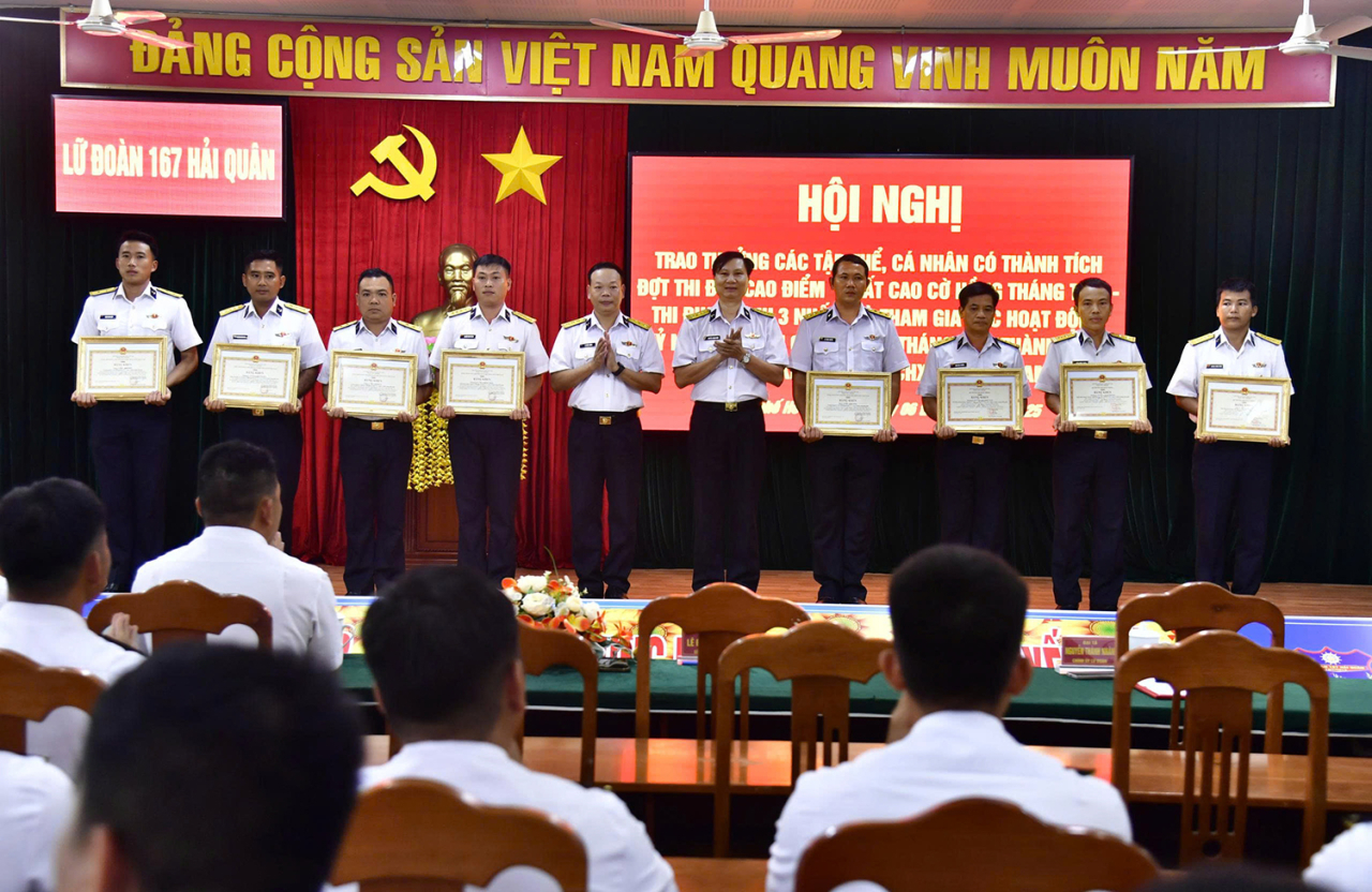 HQ Online - Chiều 6/11, tại TP. Hồ Chí Minh, Lữ đoàn 167, Vùng 2 Hải quân tổ chức tổ chức trao thưởng tập thể, cá nhân có thành tích trong đợt thi đua cao điểm “Phất cao cờ hồng tháng Tám - Thi đua giành ba nhất” và tham gia hoạt động kỷ niệm 80 năm Cách mạng tháng Tám và Quốc khánh 2/9. Đại tá Nguyễn Thành Nhân, Chính uỷ Lữ đoàn chủ trì. Cùng dự có Thượng tá Lê Đức Thảnh, Lữ đoàn trưởng.