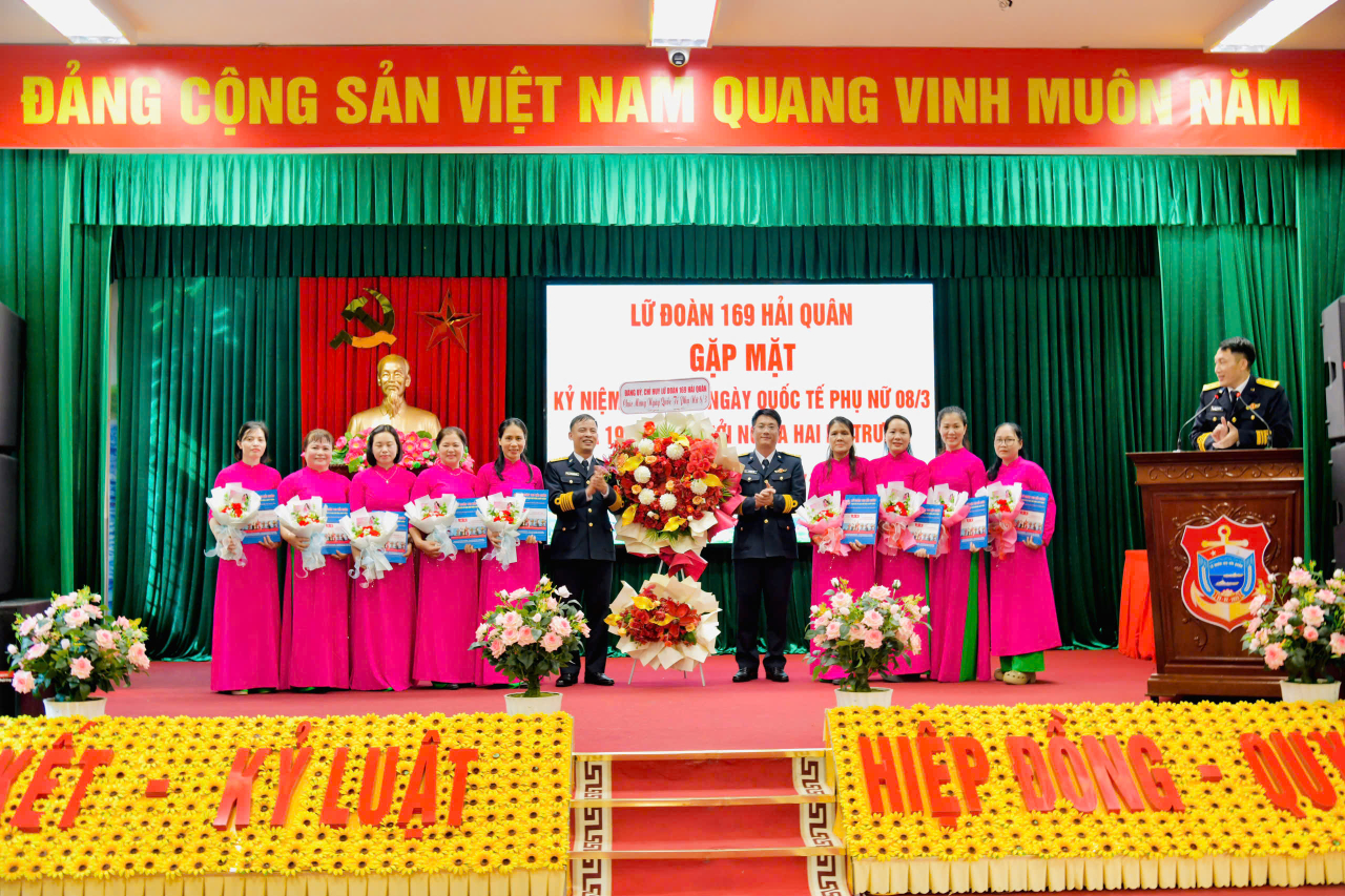 HQ Online - Sáng 6/3, tại đặc khu Vân Đồn, tỉnh Quảng Ninh, Lữ đoàn 169, Vùng 1 Hải quân tổ chức gặp mặt cán bộ, hội viên phụ nữ nhân kỷ niệm 116 năm Ngày quốc tế Phụ nữ và 1986 năm khởi nghĩa Hai Bà Trưng. Đại tá Trần Quốc Huy, Bí thư Đảng uỷ, Chính uỷ Lữ đoàn dự và phát biểu động viên.