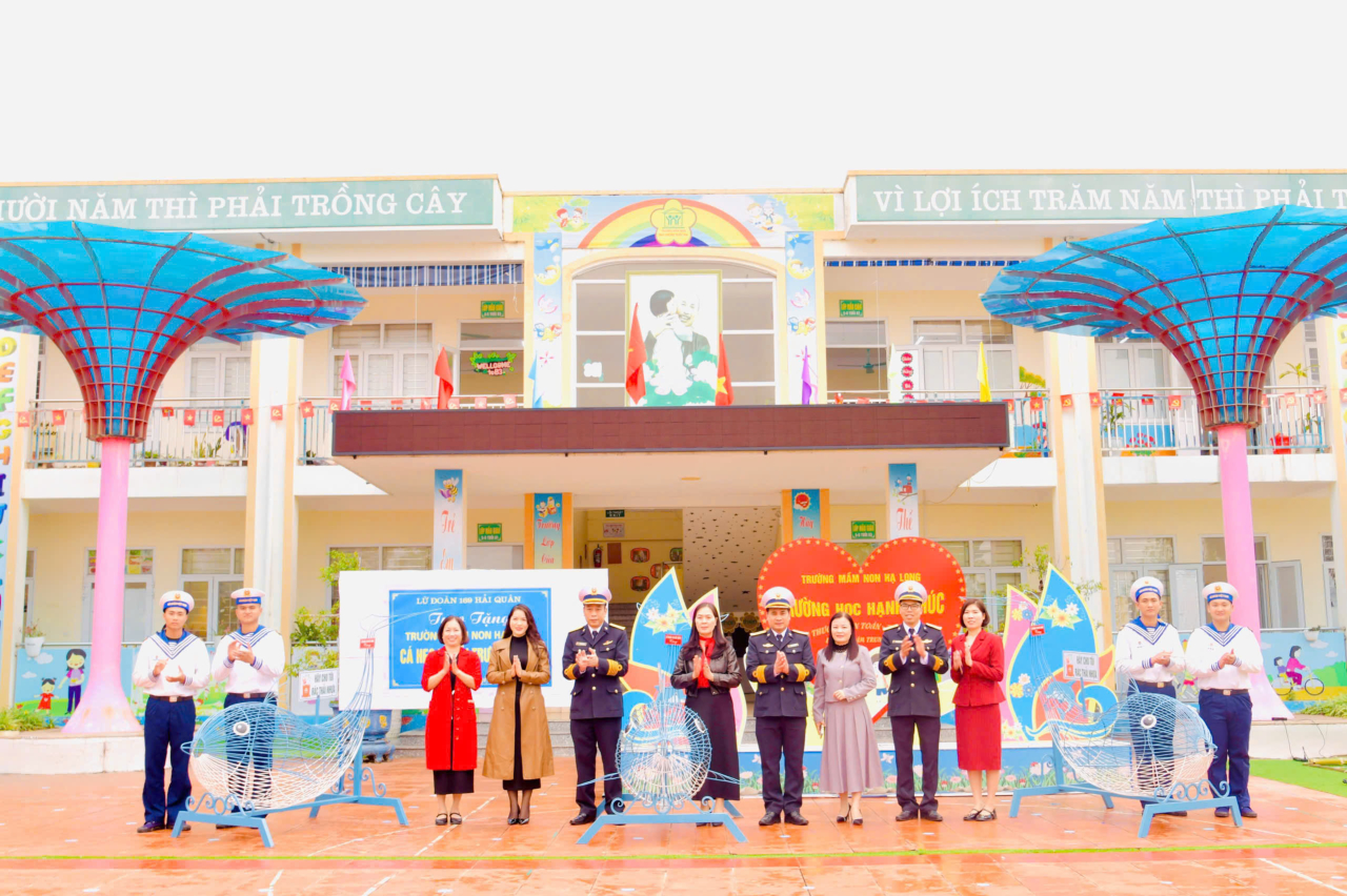 HQ Online - Ngày 20/1, tại đặc khu Vân Đồn, tỉnh Quảng Ninh, Lữ đoàn 169, Vùng 1 Hải quân đã tổ chức trao tặng mô hình thùng rác cá heo cho Trường Mầm non Hạ Long và Trường Tiểu học Cái Rồng thuộc đặc khu Vân Đồn.