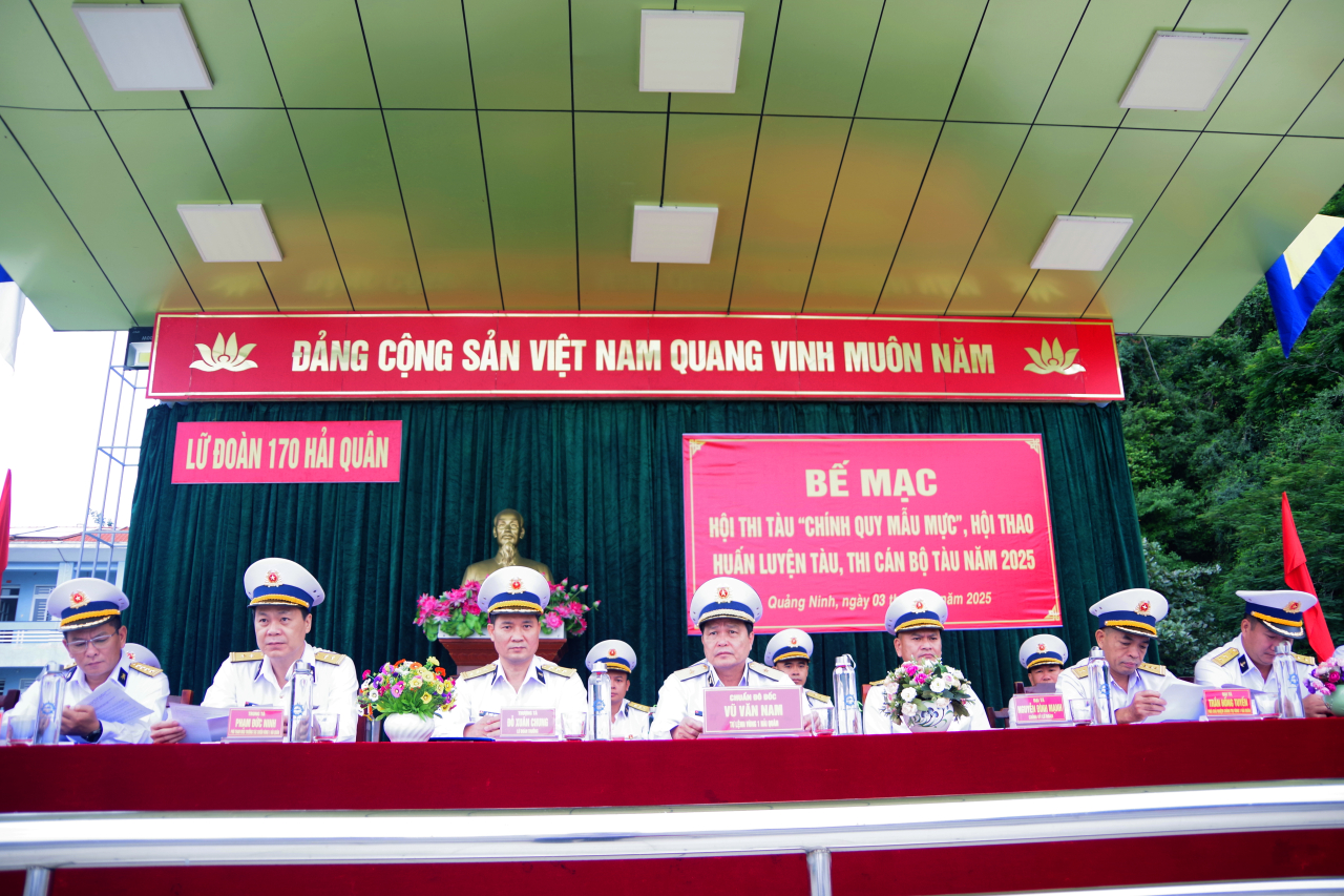 HQ Online - Ngày 3/11, tại phường Hà Tu, tỉnh Quảng Ninh, Lữ đoàn 170, Vùng 1 Hải quân tổ chức bế mạc Hội thi tàu chính quy mẫu mực, Hội thao huấn luyện tàu, thi cán bộ tàu năm 2025. Chuẩn Đô đốc Vũ Văn Nam, Tư lệnh Vùng 1 Hải quân dự và chỉ đạo.