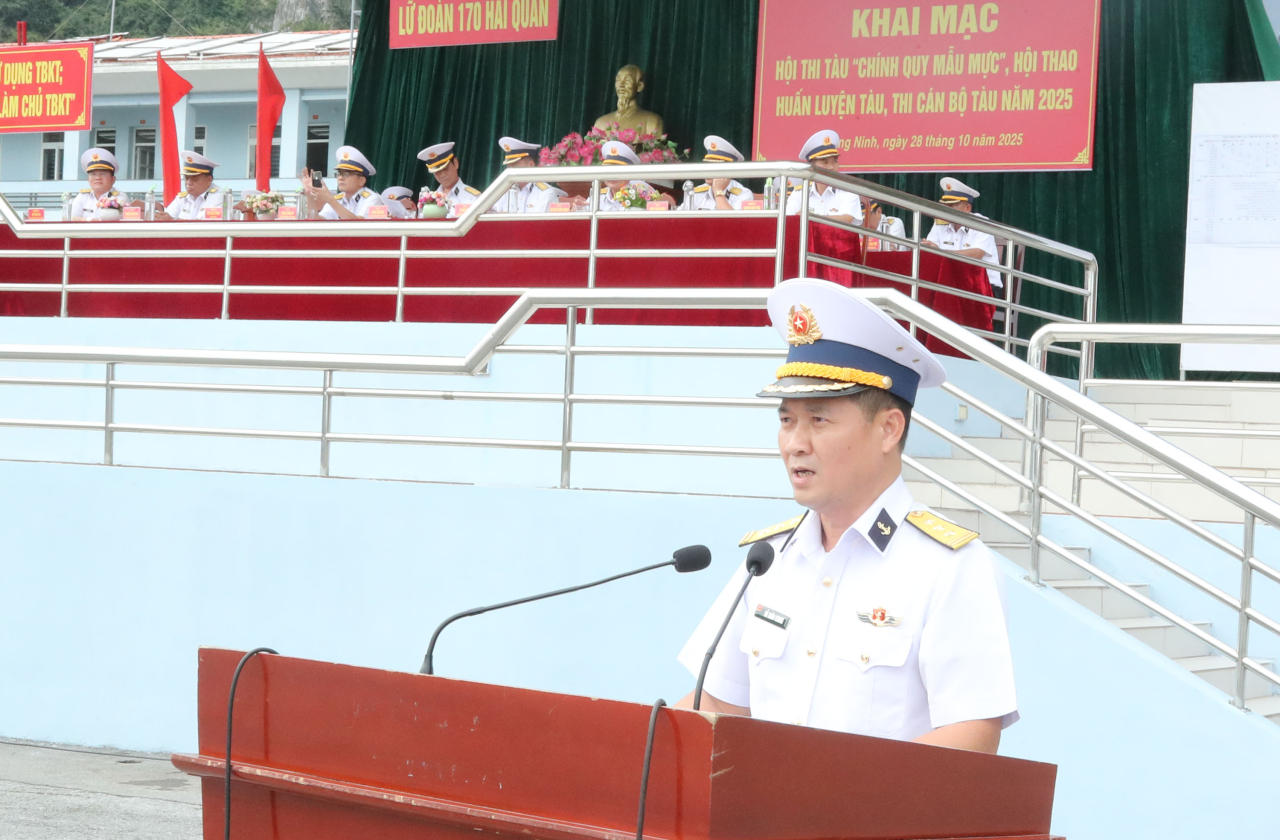 Phát biểu khai mạc, Thượng tá Đỗ Xuân Chung, Lữ đoàn trưởng Lữ đoàn 170 khẳng định: Hội thi, hội thao năm 2025 nhằm đánh giá trình độ chuyên môn, năng lực tổ chức chỉ huy, quản lý đơn vị của đội ngũ cán bộ; cũng như kết quả học tập, rèn luyện nâng cao trình độ công tác huấn luyện chiến đấu, sẵn sàng chiến đấu, công tác đảng, công tác chính trị, công tác hậu cần, kỹ thuật của các đơn vị tàu.