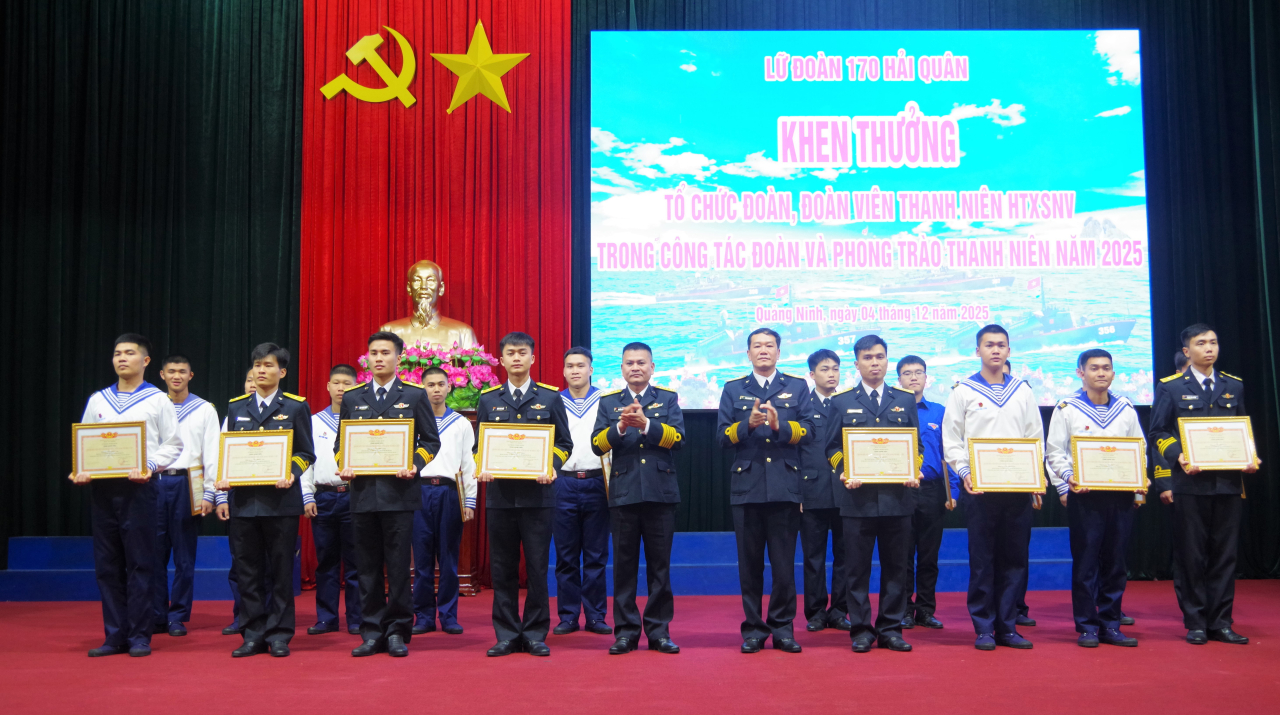 Nhân dịp này, thủ trưởng Lữ đoàn 170 trao thưởng các tập thể, cá nhân đạt thành tích tiêu biểu xuất sắc trong thực hiện hoạt động công tác đoàn và phong trào thanh niên năm 2025.