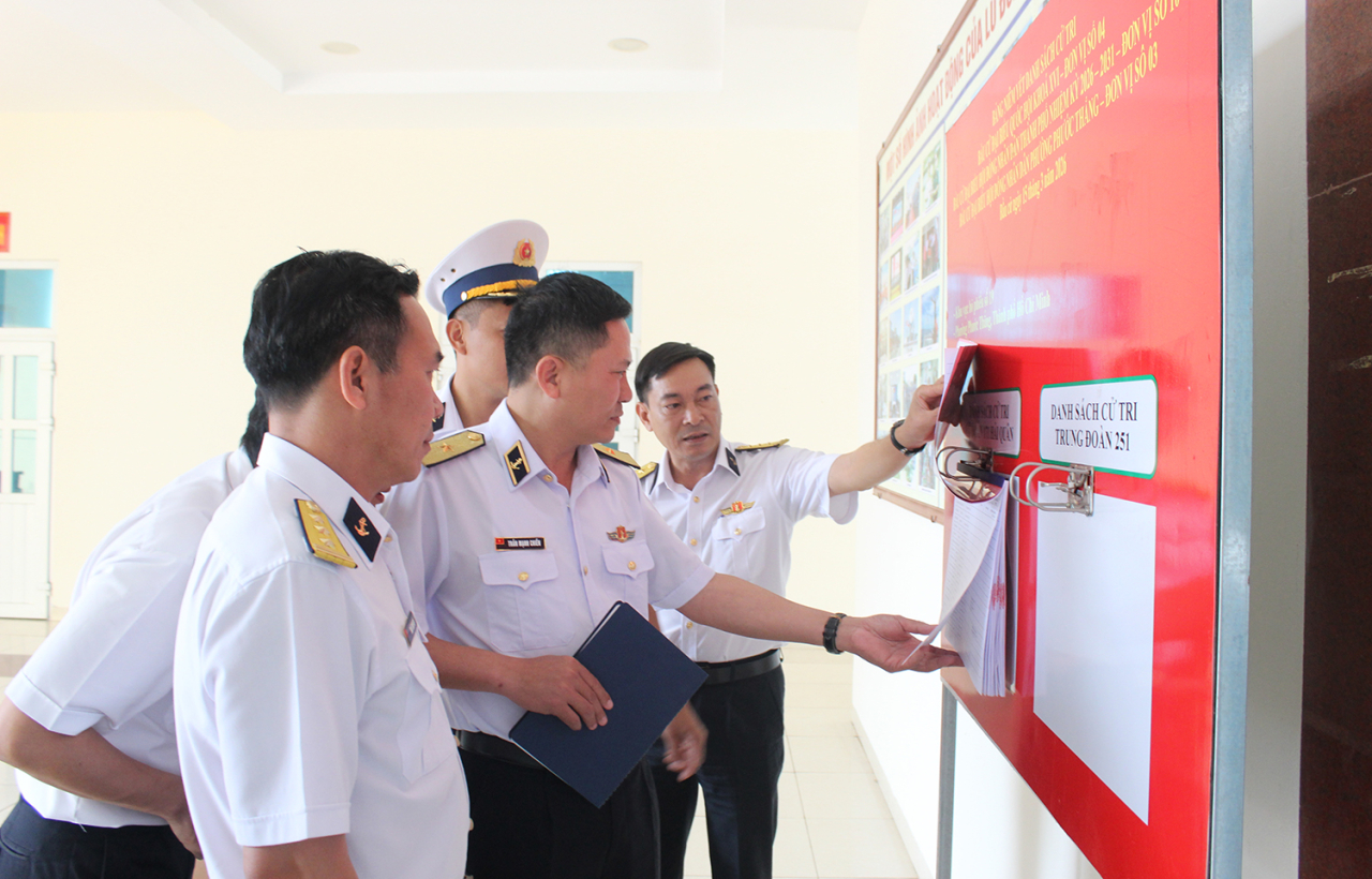 Kiểm tra thực tế và trực tiếp trao đổi với cán bộ, chiến sĩ, Chuẩn Đô đốc Trần Mạnh Chiến đánh giá đơn vị đã nắm chắc thời gian, địa điểm, quy trình bầu cử; đồng thời yêu cầu tiếp tục rà soát kỹ các khâu, bảo đảm chặt chẽ, đúng quy định, an toàn tuyệt đối, để ngày bầu cử thực sự trở thành ngày hội của toàn dân.