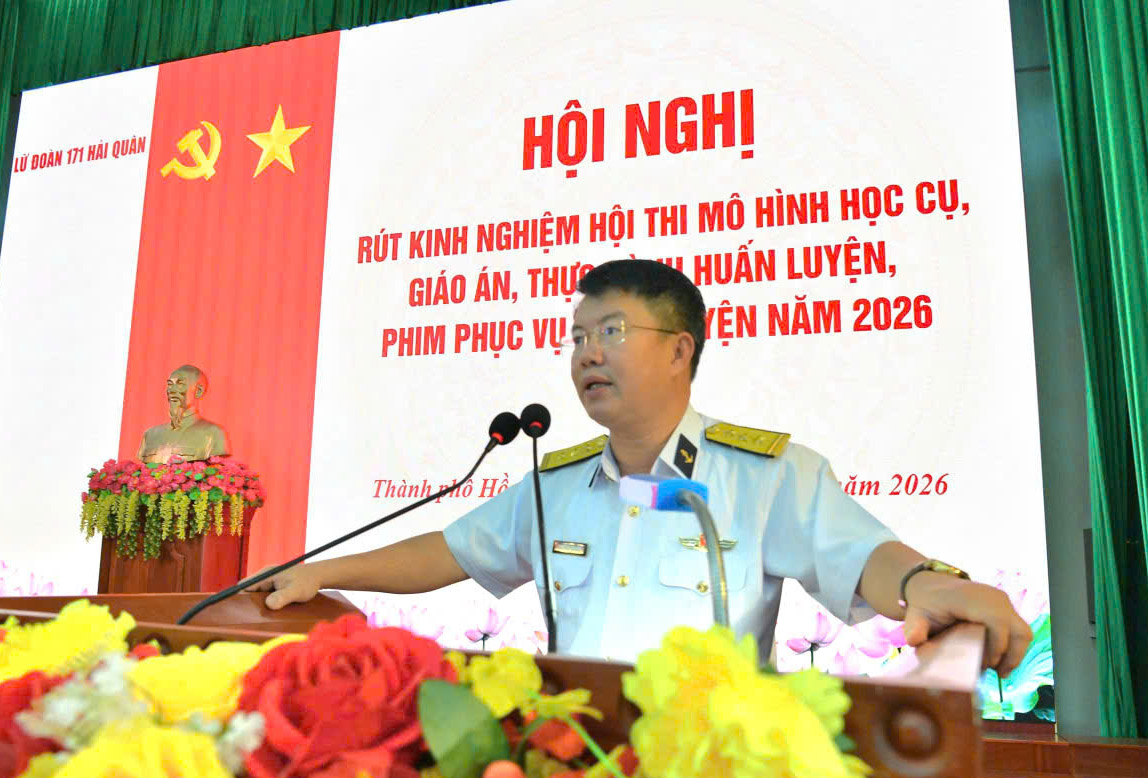 Chiều 22/1, tại P. Phước Thắng (TP Hồ Chí Minh) Lữ đoàn 171, Vùng 2 Hải quân tổ chức hội nghị rút kinh nghiệm hội thi mô hình học cụ, giáo án thực hành huấn luyện, phim phục vụ huấn luyện năm 2026.