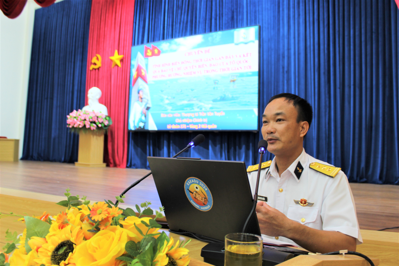 Tại buổi tuyên truyền, Thượng tá Trần Văn Tuyến, Chủ nhiệm Chính trị thông tin những nội dung trọng tâm về tình hình biển đảo thời gian gần đây; dự báo tình hình trong thời gian tới; quan điểm, chủ trương của Đảng, Nhà nước trong bảo vệ chủ quyền biển đảo của Tổ quốc; kết quả thực hiện nhiệm vụ bảo vệ chủ quyền, xây dựng Quân chủng và Vùng 2 Hải quân chính quy, hiện đại.