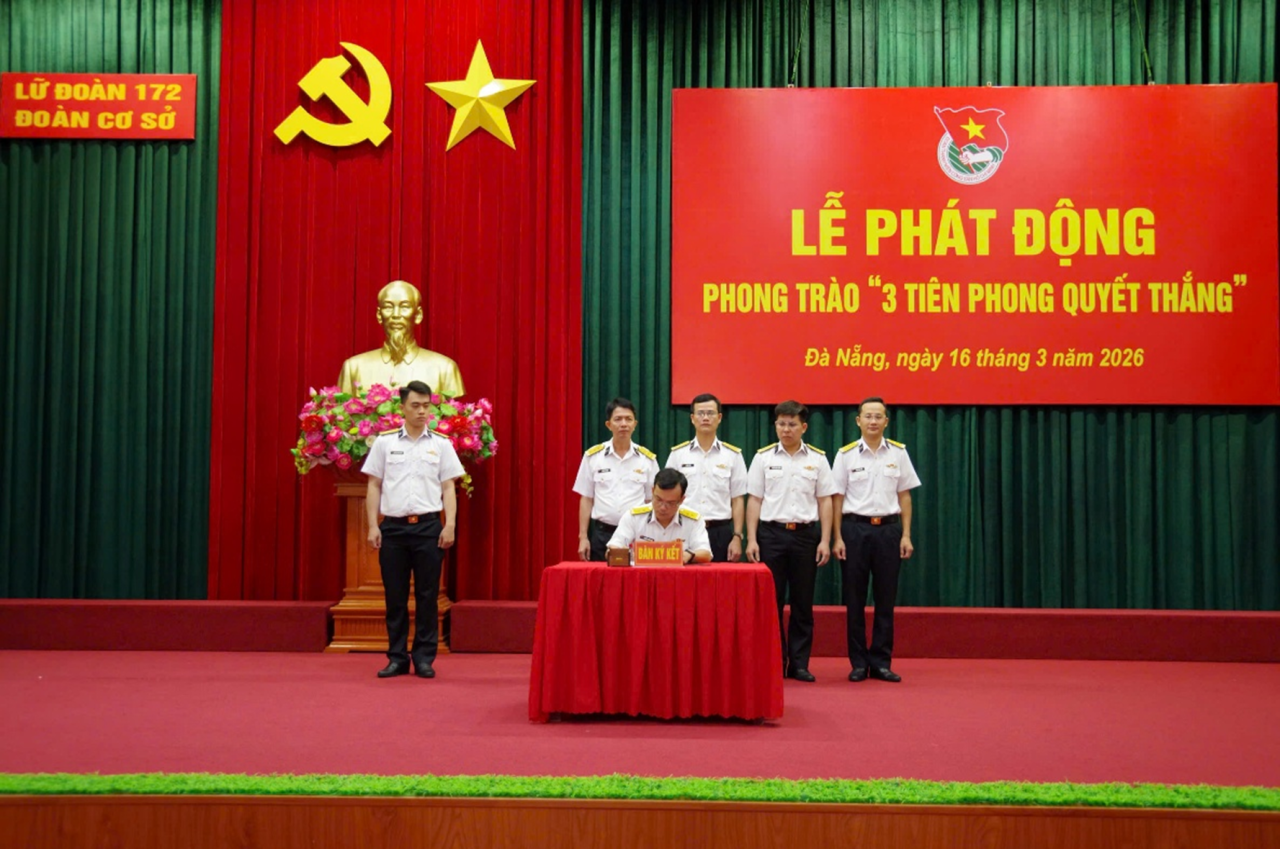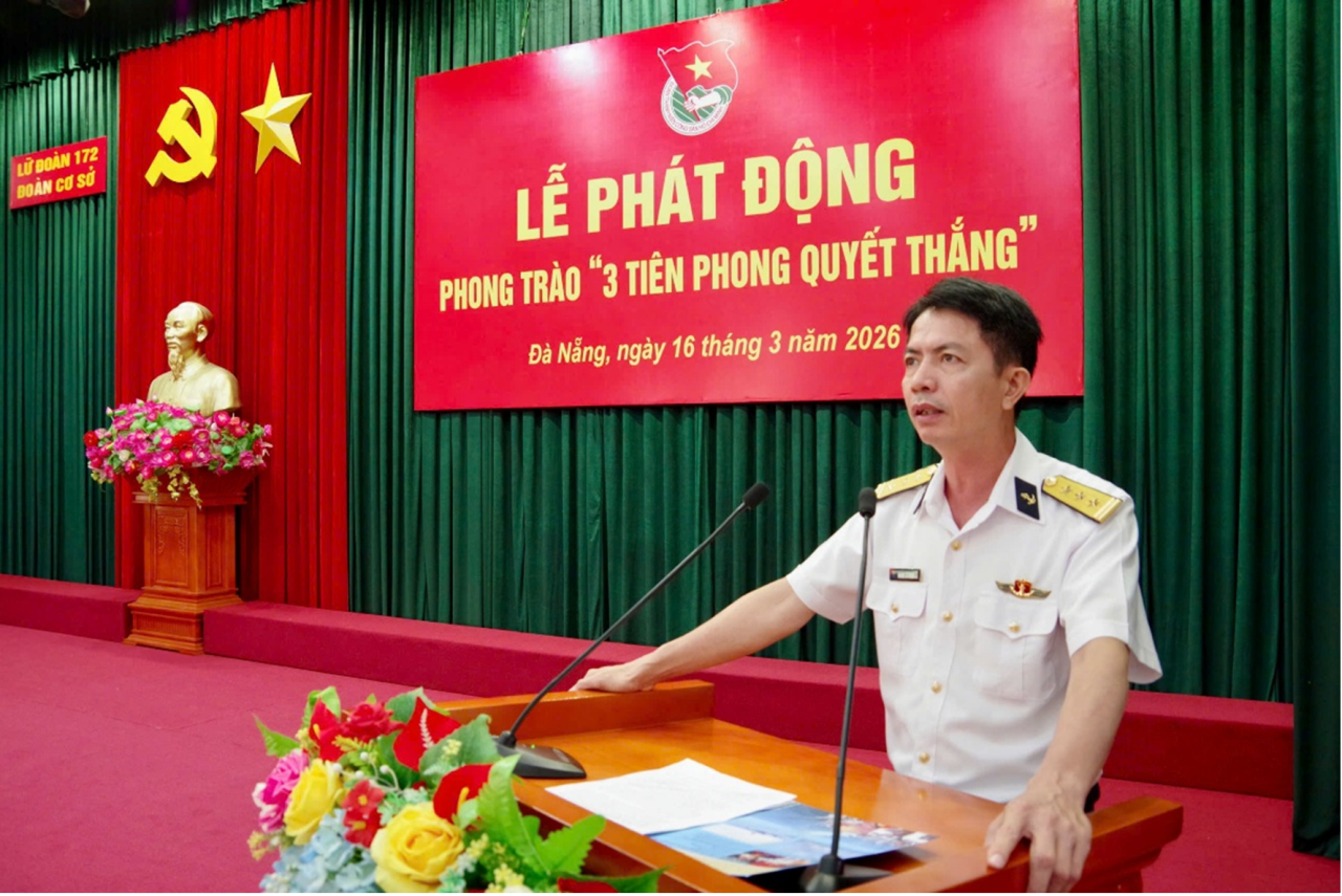 HQ Online - Sáng 16/3, tại Đà Nẵng, Đoàn cơ sở Lữ đoàn 172, Vùng 3 Hải quân tổ chức phát động phong trào “3 tiên phong quyết thắng” trong Thanh niên Lữ đoàn giai đoạn 2025 - 2030. Đại tá Nguyễn Quang Vinh, Phó Chủ nhiệm Chính trị Vùng dự, chỉ đạo. Đây là đơn vị được Vùng 3 chọn phát động làm trước cho toàn Vùng.