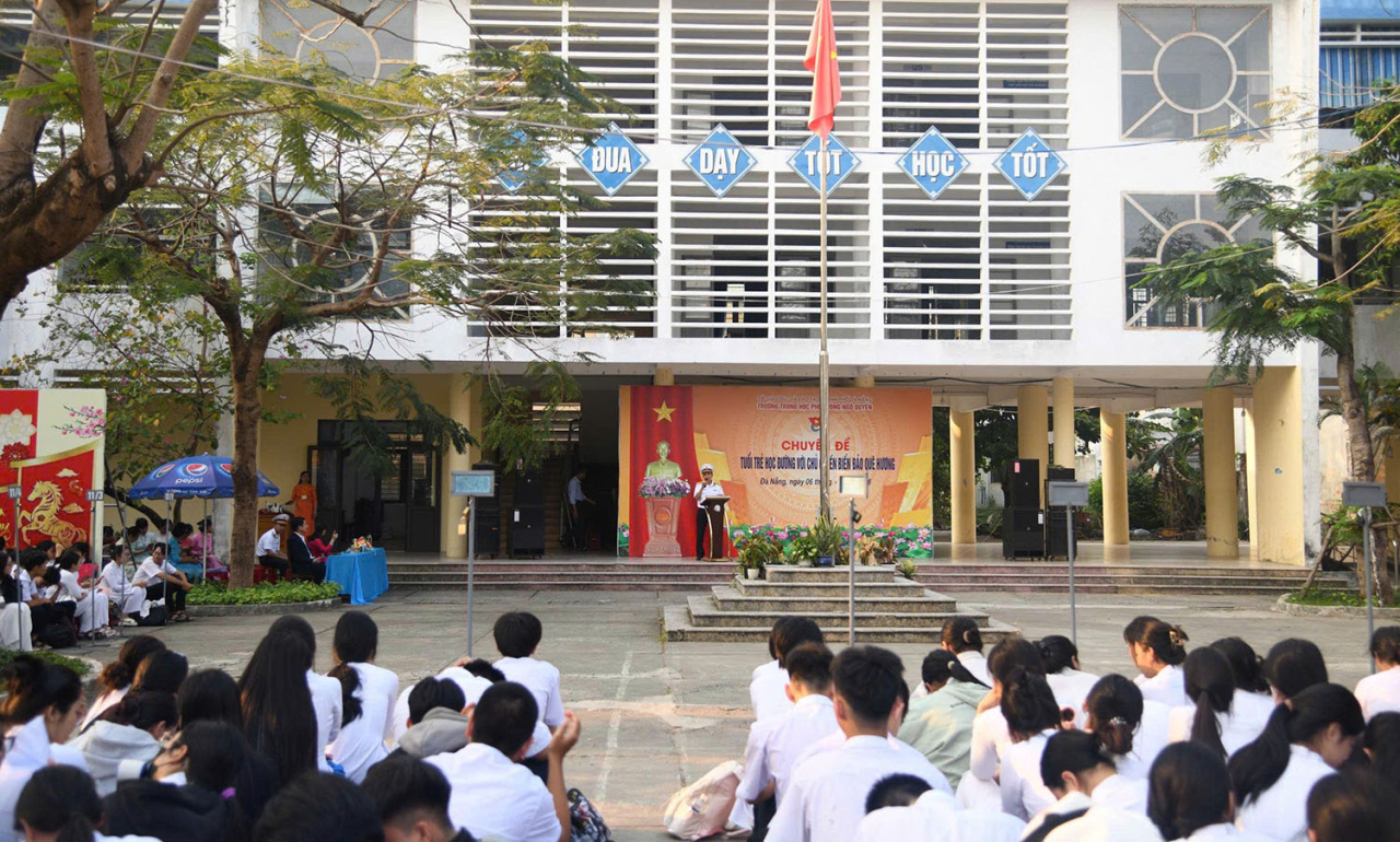 Báo cáo viên của Lữ đoàn 172 tuyên truyền thu hút nguồn lực tại Trường THPT Ngô Quyền