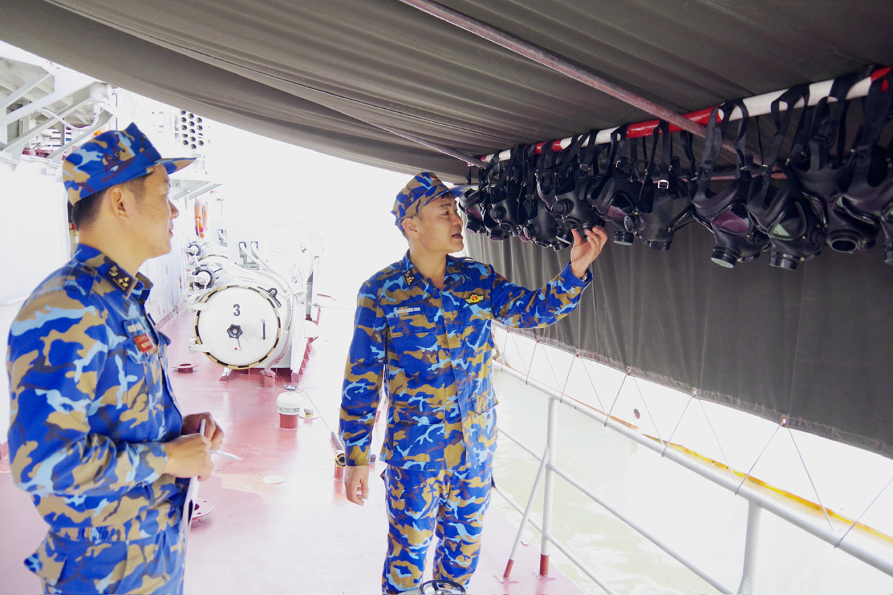 Kiểm tra thiết bị phòng hóa trên tàu phóng lôi