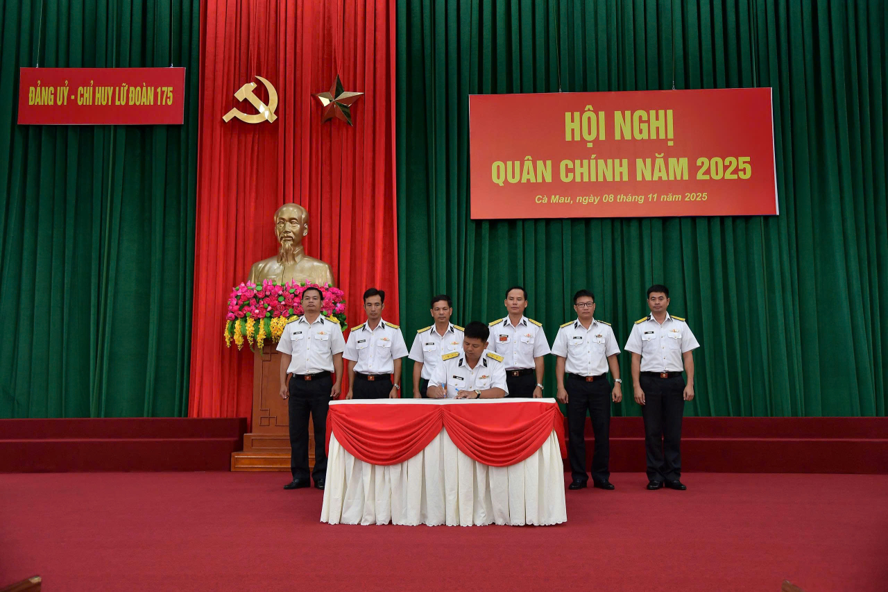 HQ Online - Sáng 8/11, tại xã Năm Căn, tỉnh Cà Mau, Lữ đoàn 175, Vùng 5 Hải quân tổ chức Hội nghị Quân chính năm 2025. Chuẩn Đô đốc Ngô Văn Thành, Bí thư Đảng uỷ, Chính uỷ Vùng dự và chỉ đạo.