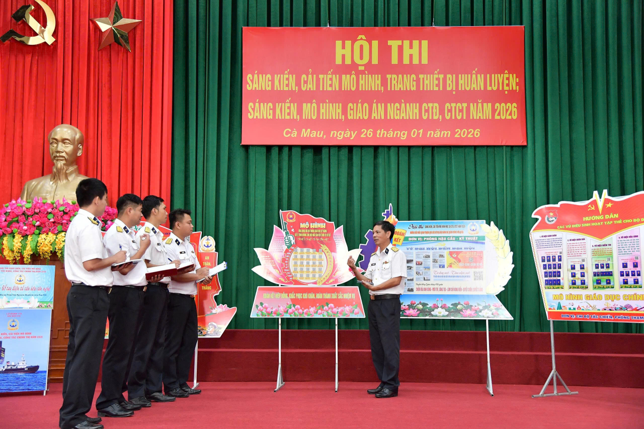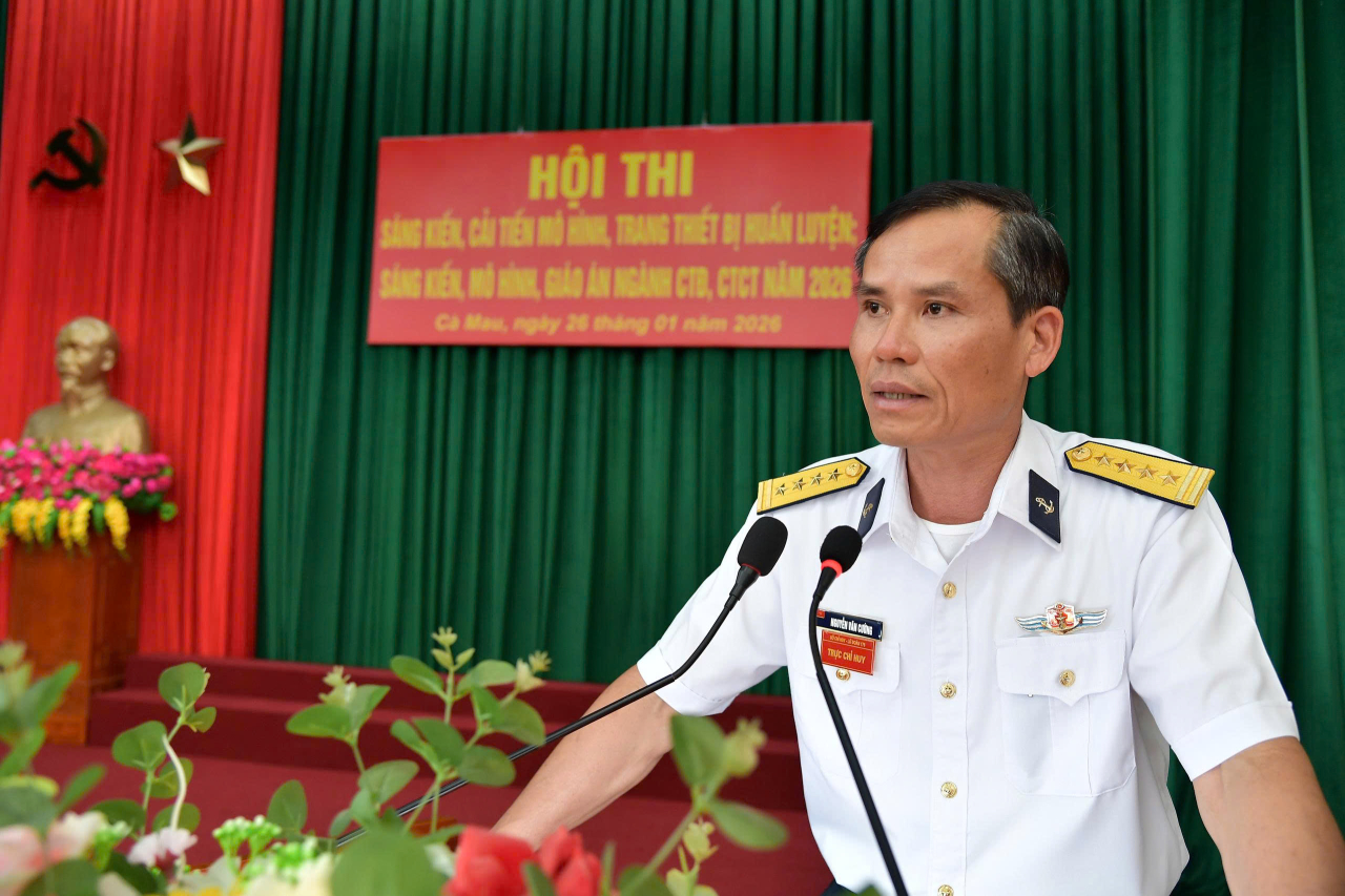HQ Online - Ngày 26/1, tại xã Năm Căn, tỉnh Cà Mau, Lữ đoàn 175, Vùng 5 Hải quân tổ chức khai mạc Hội thi sáng kiến, cải tiến mô hình, trang thiết bị huấn luyện; sáng kiến, mô hình, giáo án ngành công tác đảng, công tác chính trị năm 2026. Đại tá Nguyễn Văn Cường, Lữ đoàn trưởng dự và chỉ đạo. Cùng dự có Đại tá Bùi Quang Phẩm, Bí thư Đảng ủy, Chính ủy Lữ đoàn.