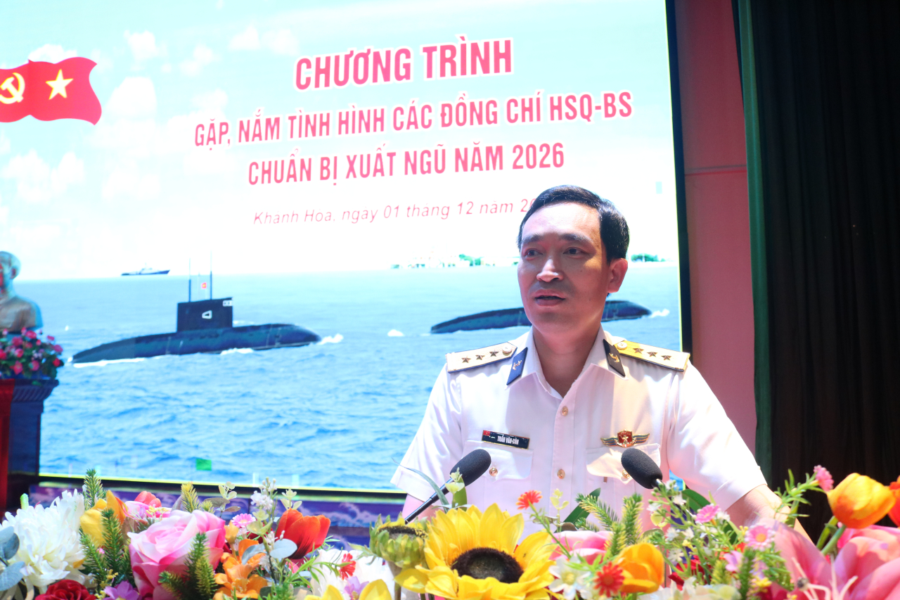 HQ Online - Ngày 2/12, tại phường Bắc Cam Ranh, tỉnh Khánh Hòa, Lữ đoàn 189 Hải quân tổ chức buổi gặp mặt nắm tình hình các đồng chí hạ sĩ quan-chiến sĩ chuẩn bị hoàn thành nghĩa vụ quân sự và trở về địa phương. Thượng tá Trần Văn Côn, Chủ nhiệm Chính trị Lữ đoàn chủ trì.