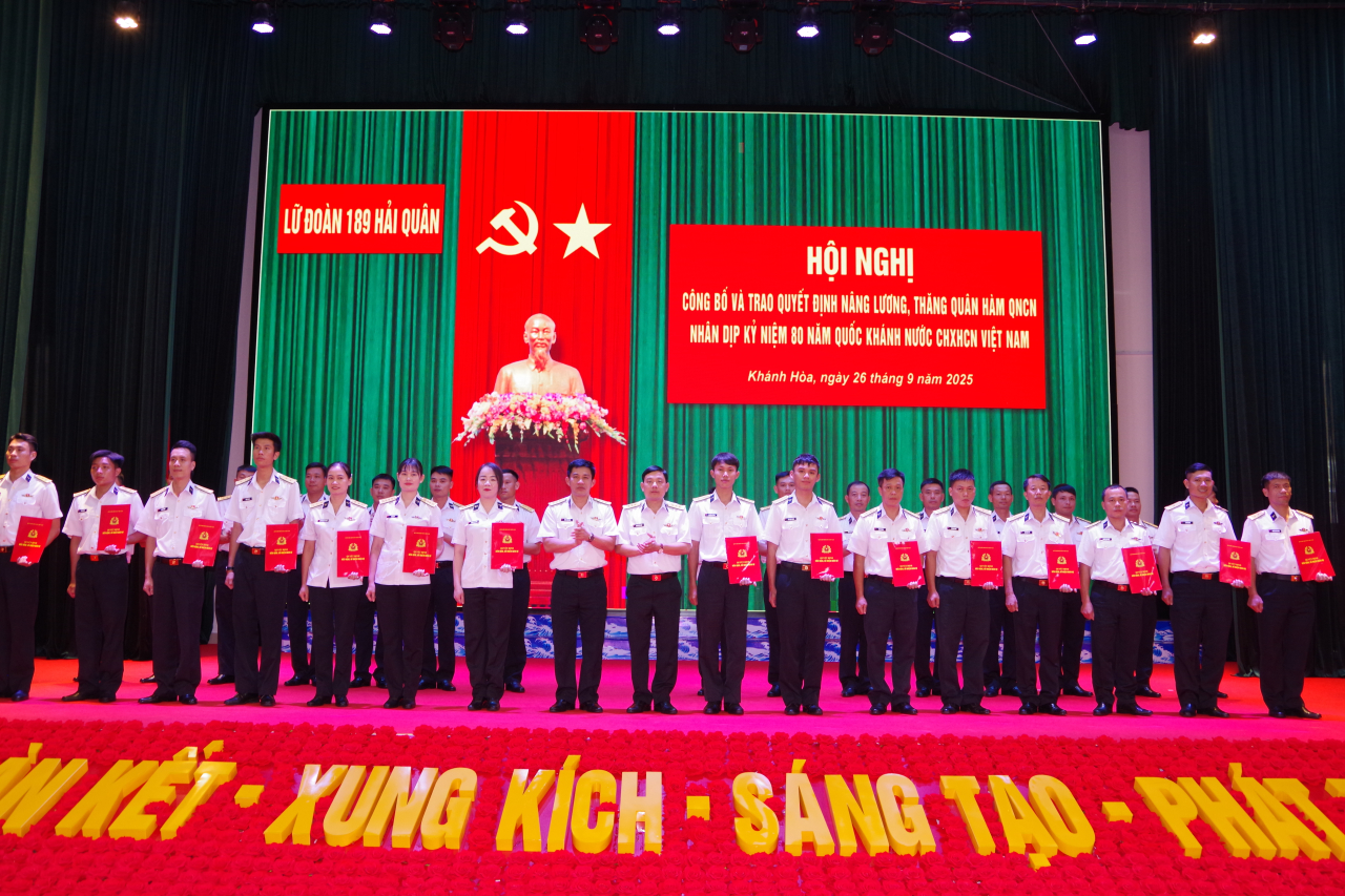 Cùng ngày, Lữ đoàn đã tổ chức công bố, trao quyết định nâng bậc lương, thăng quân hàm cho QNCN và tuyên dương các lực lượng tham gia diễu binh, diễu hành trong Lễ kỷ niệm 80 năm Cách mạng Tháng Tám thành công và Quốc khánh nước Cộng hòa xã hội chủ nghĩa Việt Nam (2/9/1945 - 2/9/2025).