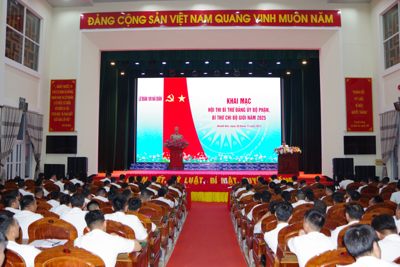 HQ Online - Ngày 30 và 31/12, tại phường Bắc Cam Ranh, tỉnh Khánh Hòa, Đảng ủy Lữ đoàn 189 Hải quân tổ Hội thi bí thư đảng ủy bộ phận, bí thư chi bộ giỏi năm 2025. Thượng tá Nguyễn Tiến Đoạt, Phó Bí thư Đảng ủy, Lữ đoàn trưởng dự và phát biểu khai mạc.