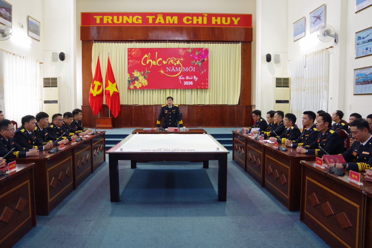 Thượng tá Nguyễn Tiến Đoạt, Lữ đoàn trưởng đã đọc thư chúc Tết của Đảng ủy, Bộ Tư lệnh Hải quân và gửi lời chúc mừng năm mới đến toàn thể cán bộ, chiến sĩ đang thực hiện nhiệm vụ tại đơn vị.