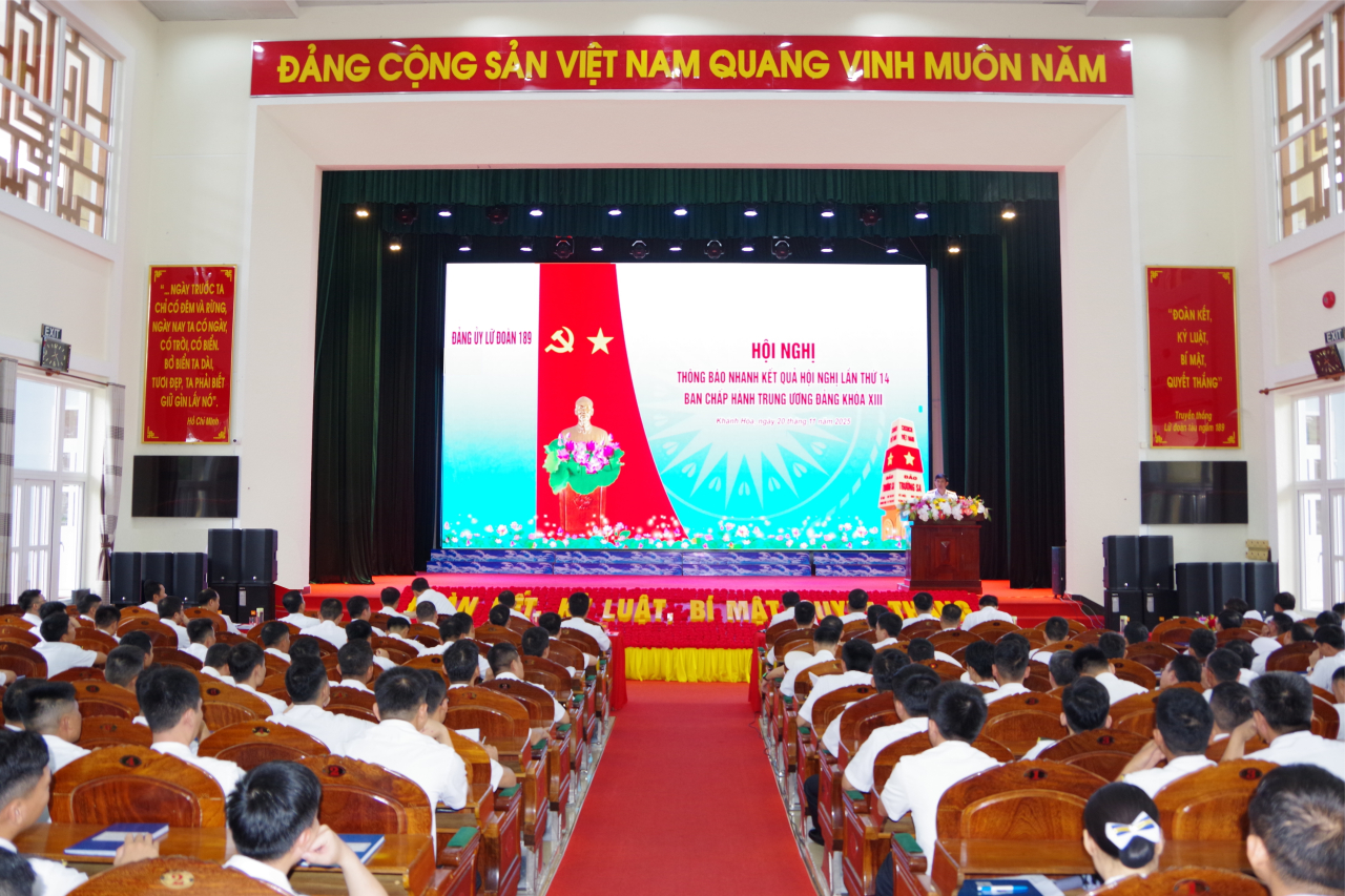 Cùng ngày, Đảng ủy, chỉ huy Lữ đoàn 189 tổ chức thông báo nhanh kết quả Hội nghị lần thứ 14 Ban Chấp hành Trung ương Đảng khóa XIII.