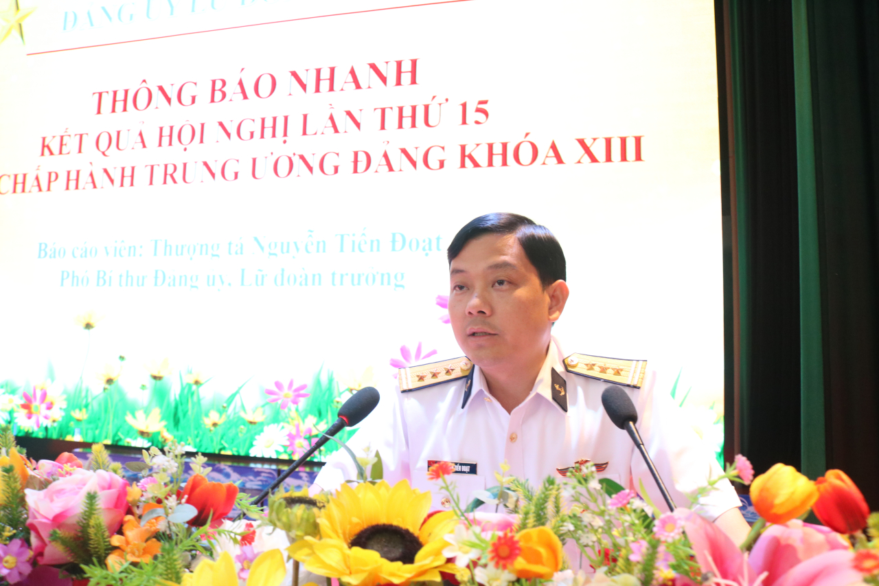 HQ Online - Sáng 15/1, tại phường Bắc Cam Ranh, Khánh Hòa, Lữ đoàn 189 Hải quân tổ chức Hội nghị thông báo nhanh kết quả Hội nghị lần thứ 15 Ban Chấp hành Trung ương Đảng khóa XIII. Thượng tá Nguyễn Tiến Đoạt, Lữ đoàn trưởng chủ trì.