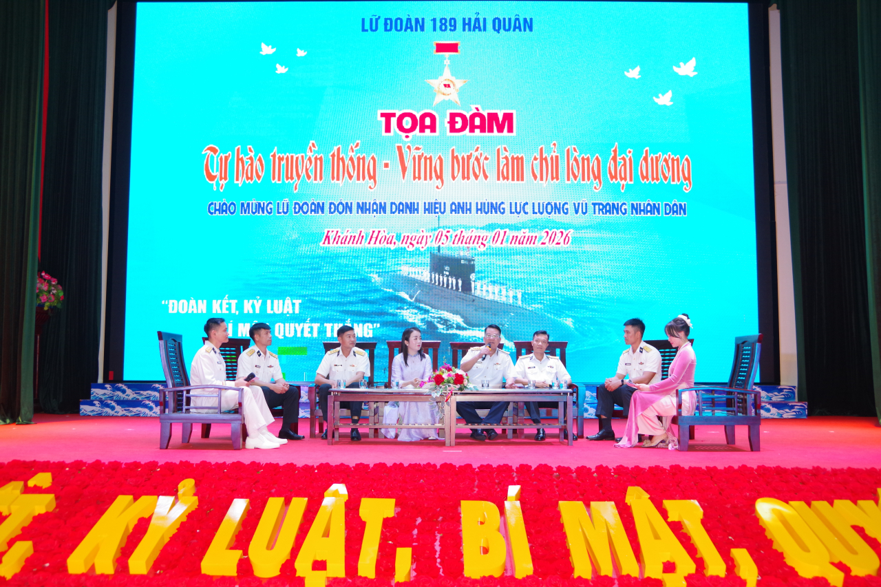 HQ Online - Nằm trong chuỗi các hoạt động chào mừng đơn vị đón nhận danh hiệu Anh hùng lực lượng vũ trang nhân dân, tối ngày 5/1, Lữ đoàn 189 Hải quân đã tổ chức chương trình tọa đàm “Tự hào truyền thống - Vững bước làm chủ lòng đại dương” với sự tham dự của đông đảo cán bộ, chiến sĩ.