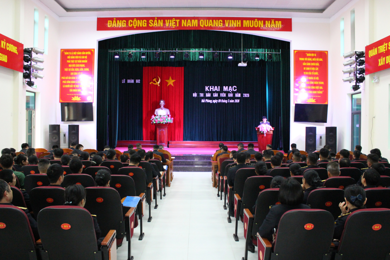 HQ Online - Ngày 9 và 10/3, tại Hải Phòng, Lữ đoàn Thông tin 602, Bộ Tham mưu Hải quân tổ chức Hội thi báo cáo viên giỏi năm 2026. Đến dự và chỉ đạo hội thi có Đại tá Đặng Văn Cảnh, Phó Chủ nhiệm Chính trị, Bộ Tham mưu Hải quân; Thượng tá Phan Châu Tuấn, Bí thư Đảng ủy, Chính ủy Lữ đoàn.