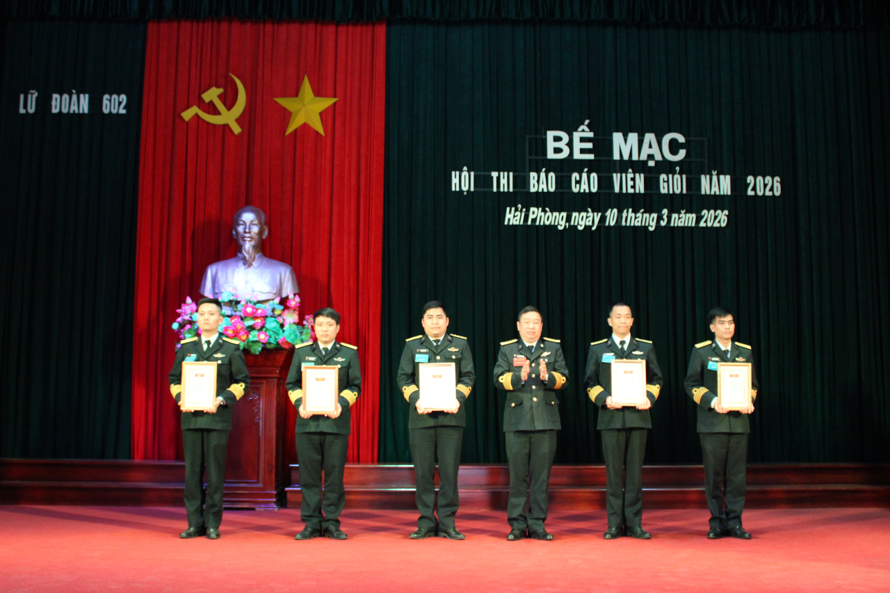Ban tổ chức trao 1 giải Nhất; 2 giải Nhì; 2 giải Ba và Giấy chứng nhận Báo cáo viên giỏi của Lữ đoàn 602 năm 2026 tặng các thí sinh đạt thành tích cao trong hội thi.