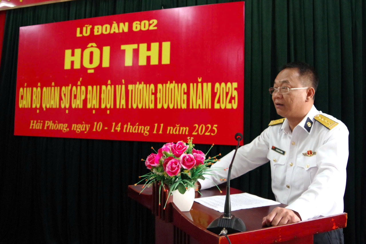 HQ Online - Từ ngày 10 đến 14/11, tại Hải Phòng, Lữ đoàn 602 (Bộ Tham mưu Hải quân) tổ chức Hội thi cán bộ quân sự cấp đại đội và tương đương năm 2025. Dự, chỉ đạo hội thi có Đại tá Lê Quang Đông, Lữ đoàn trưởng; Thượng tá Phan Châu Tuấn, Bí thư Đảng ủy, Chính ủy Lữ đoàn và các đồng chí trong Đảng ủy, chỉ huy Lữ đoàn.