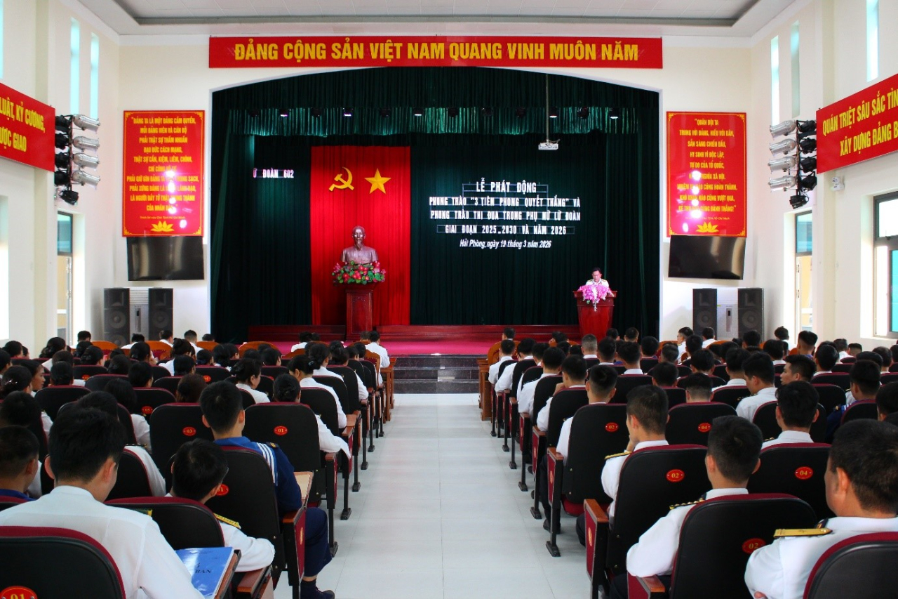 Cũng tại buổi lễ, đồng chí Lê Thị Hương, Chủ tịch Hội phụ nữ phát động phong trào thi đua giai đoạn 2025 - 2030 và năm 2026 với chủ đề: “Phụ nữ Lữ đoàn bản lĩnh - trí tuệ, đẩy mạnh chuyển đổi số, hoàn thành tốt nhiệm vụ, xây dựng gia đình hạnh phúc, xứng danh Bộ đội Cụ Hồ - Người chiến sĩ Hải quân trong kỷ nguyên mới” với các tiêu chí: bản lĩnh - trí tuệ; đẩy mạnh chuyển đổi số; hoàn thành tốt nhiệm vụ; xây dựng gia đình hạnh phúc.