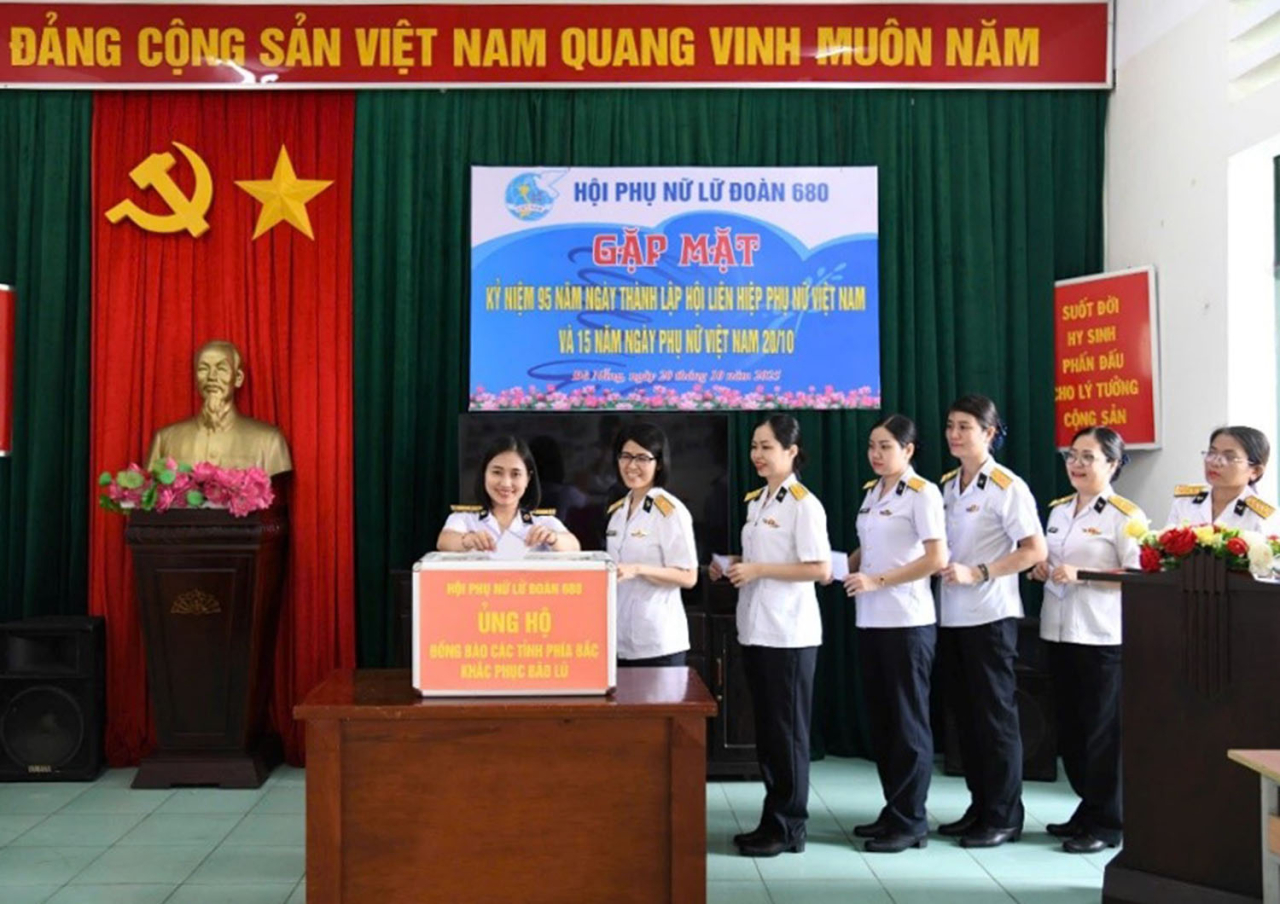 Nhân dịp này, với tinh thần “Tương thân tương ái”, “Lá lành đùm lá rách”, cán bộ, hội viên phụ nữ Lữ đoàn 680 đã quyên góp và trích một phần kinh phí từ mô hình "Nuôi heo đất" để ủng hộ nhân dân các tỉnh phía Bắc bị ảnh hưởng do bão số 10 và 11, với số tiền hơn 7 triệu đồng.