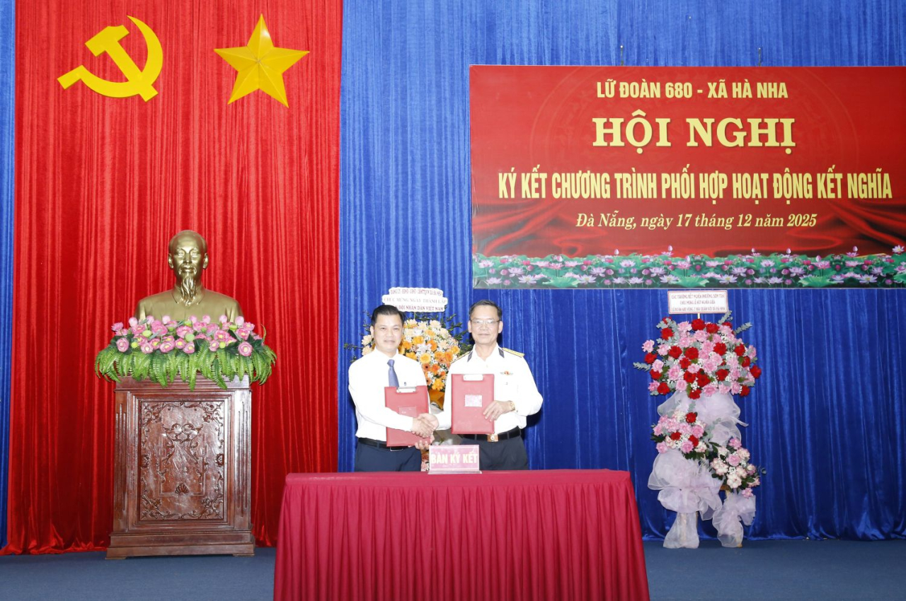 Chỉ huy Lữ đoàn 680 và lãnh đạo xã Hà Nha ký kết chương trình phối hợp hoạt động kết nghĩa