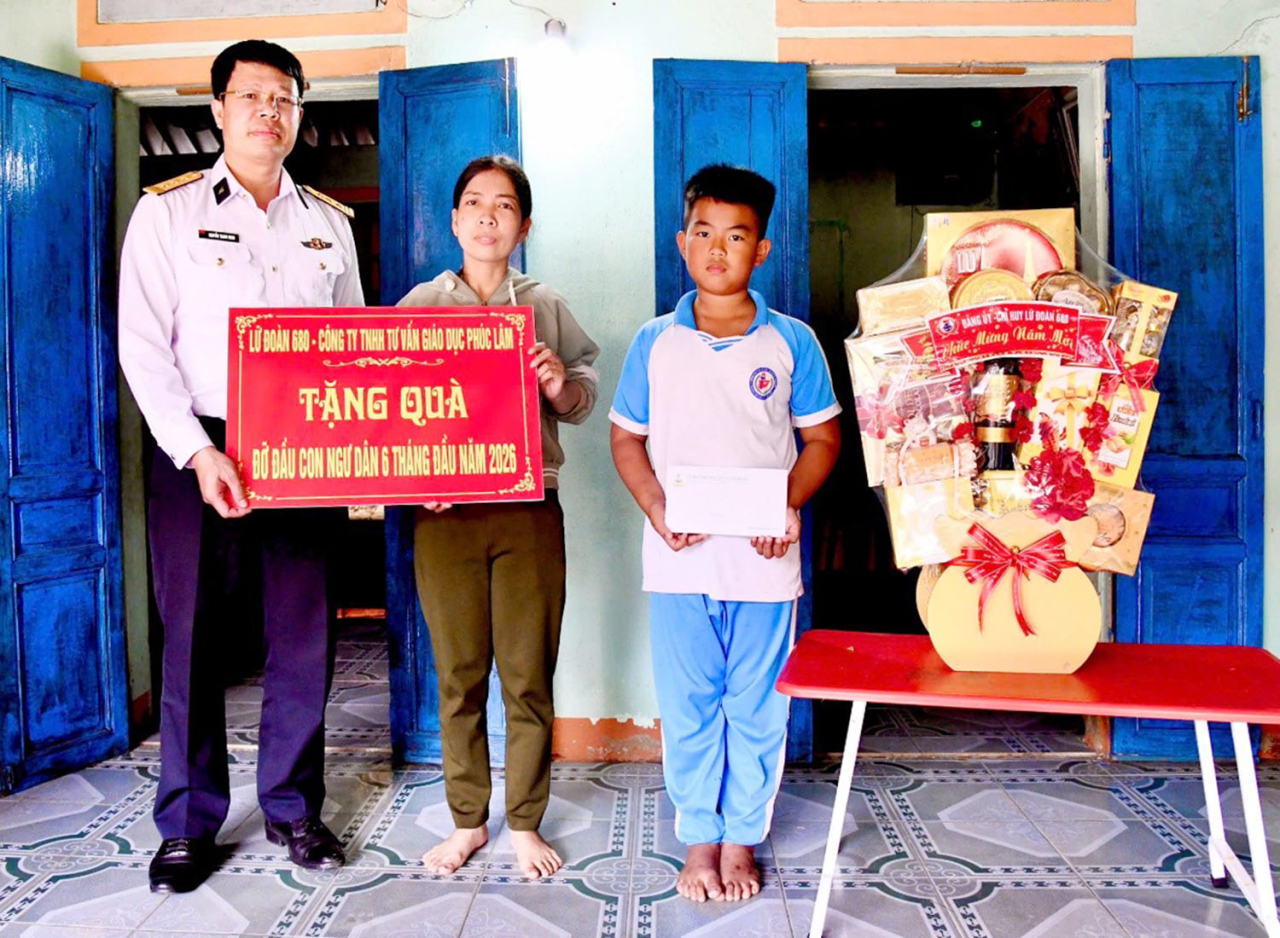 Thủ trưởng Lữ đoàn 680 tặng quà cho các gia đình quân nhân có hoàn cảnh khó khăn