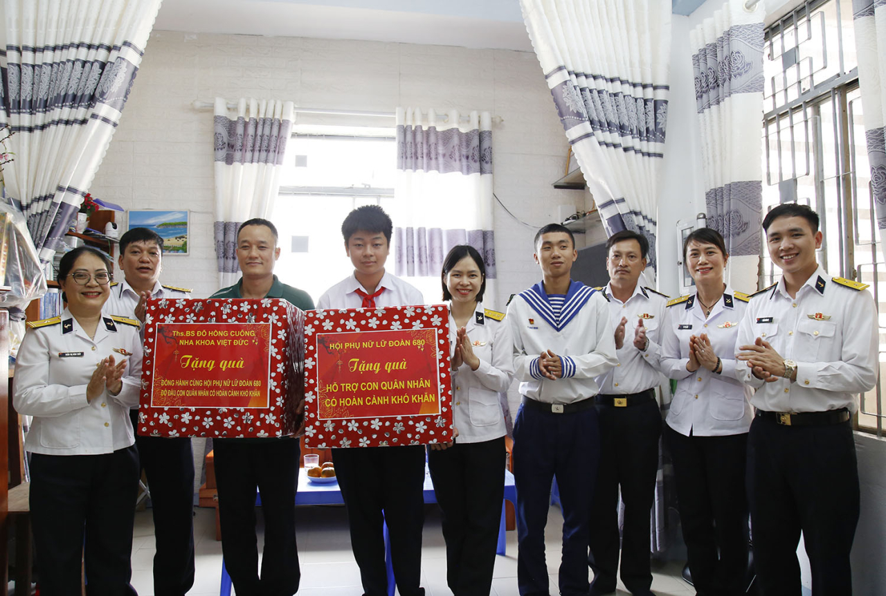 Nhân dịp này, Bác sĩ Đỗ Hồng Cuông, Nha khoa Việt Đức đã đồng hành cùng Hội phụ nữ, Đoàn cơ sở Lữ đoàn 680 thực hiện chương trình đỡ đầu cháu Nguyễn Đỗ Minh Phương (14 tuổi), là con của Đại úy quân nhân chuyên nghiệp Nguyễn Trung Thành, Nhân viên Phòng Hậu cần-Kỹ thuật Lữ đoàn 680.