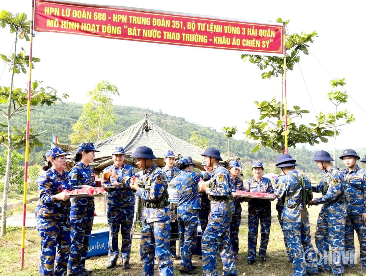 HQ Online - Ngày 22/4, tại TP. Đà Nẵng, Hội phụ nữ Lữ đoàn 680 phối hợp với Hội phụ nữ Trung đoàn 351 tổ chức thực hiện chương trình “Bát nước thao trường” tại Tiểu đoàn 355, Vùng 3 Hải quân.