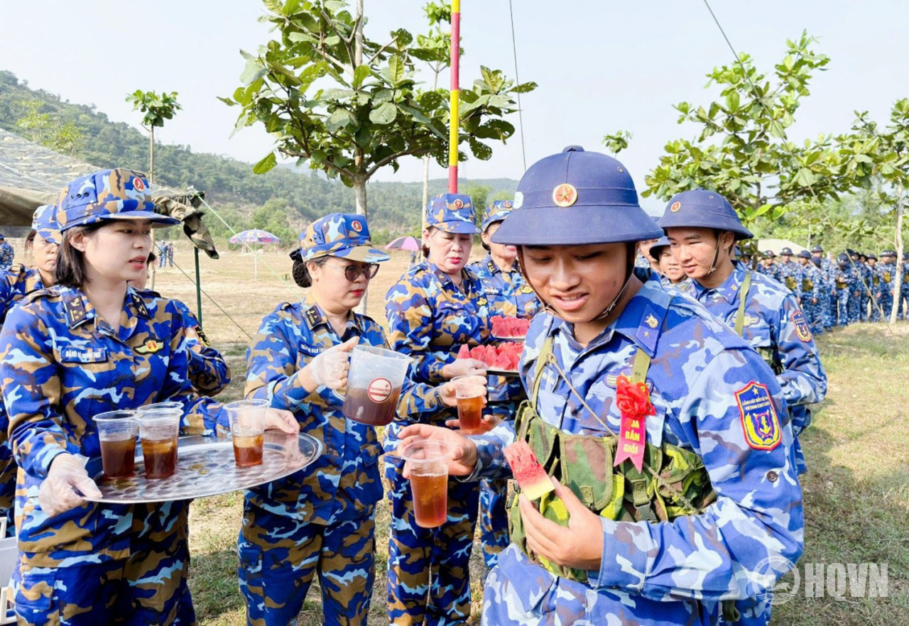 Cùng với đó, cán bộ, hội viên phụ nữ Lữ đoàn 680 và Trung đoàn 351 chuẩn bị những ly nước mát, trái cây tiếp thêm động lực cho chiến sĩ mới hăng say rèn luyện, vượt qua khó khăn, hoàn thành tốt nhiệm vụ.