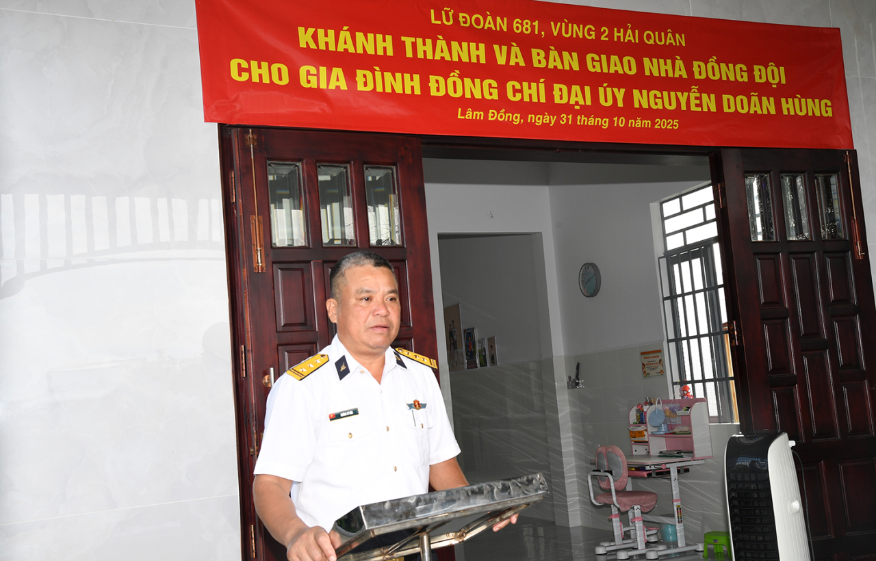 Phát biểu tại buổi bàn giao, Thượng tá Hoàng Sỹ Hòa nhấn mạnh: Chương trình nhà đồng đội là hoạt động thiết thực, thể hiện sự quan tâm sâu sắc của Đảng ủy, Bộ Tư lệnh Vùng 2, Lữ đoàn 681 đối với cán bộ, quân nhân chuyên nghiệp có hoàn cảnh khó khăn; góp phần động viên, giúp đỡ bộ đội ổn định cuộc sống, an tâm công tác, gắn bó lâu dài với đơn vị, phát huy phẩm chất “Bộ đội Cụ Hồ - Người Chiến sĩ Hải quân”.