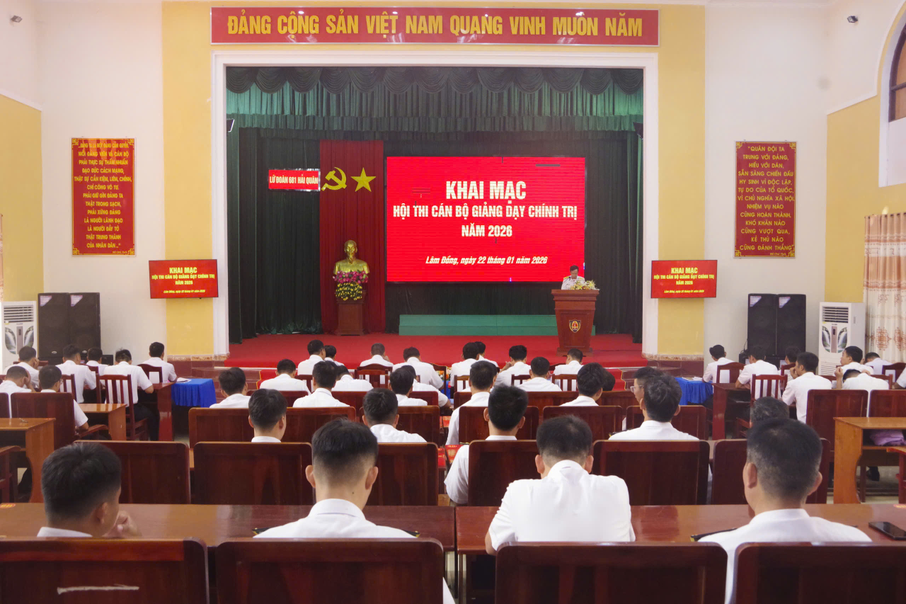 HQ Online - Ngày 22/1, tại phường Tiến Thành (tỉnh Lâm Đồng), Lữ đoàn 681, Vùng 2 Hải quân tổ chức Hội thi cán bộ giảng dạy chính trị năm 2026. Đại tá Hoàng Minh Nghĩa, Chính ủy Lữ đoàn dự và chỉ đạo.