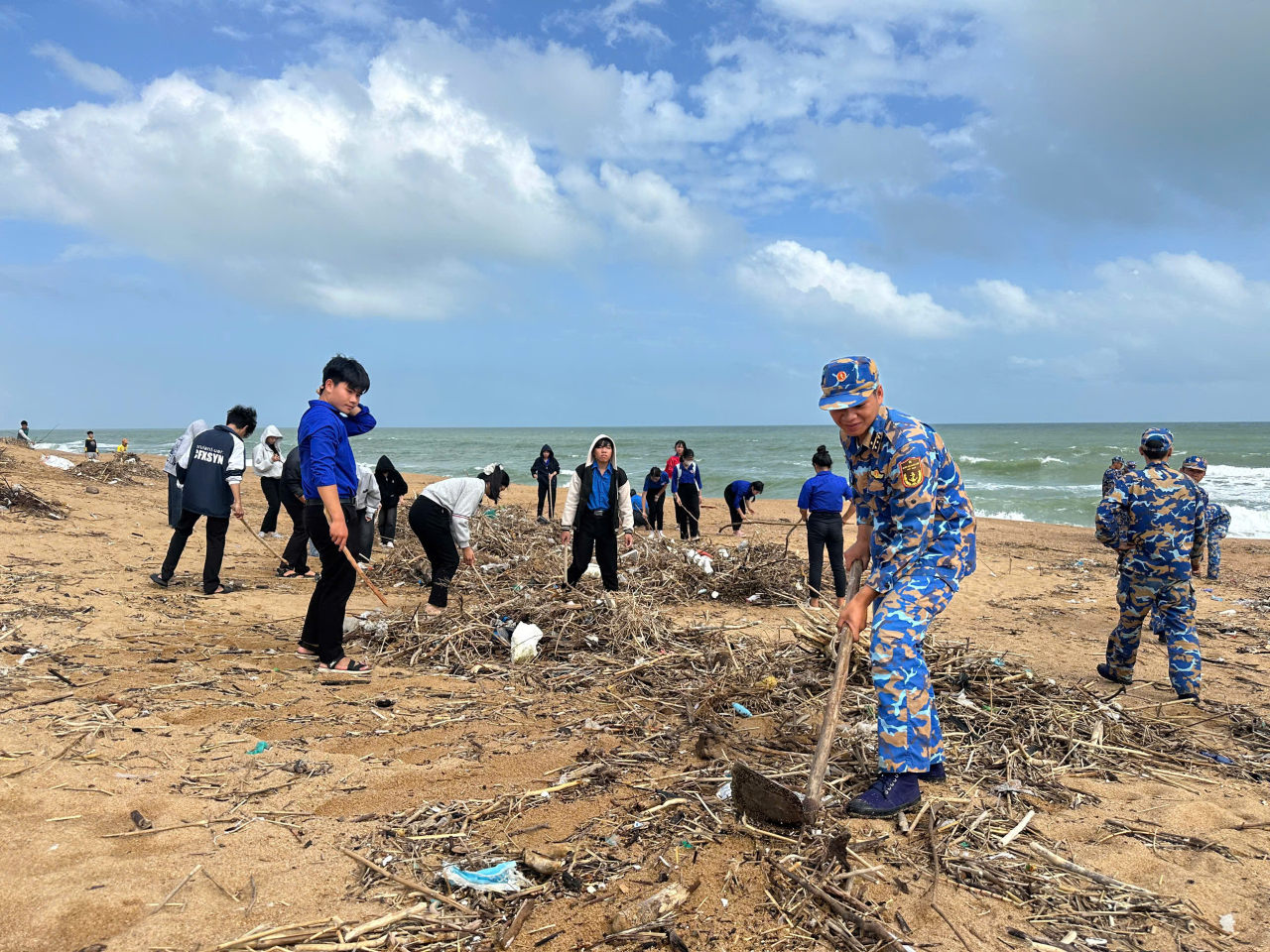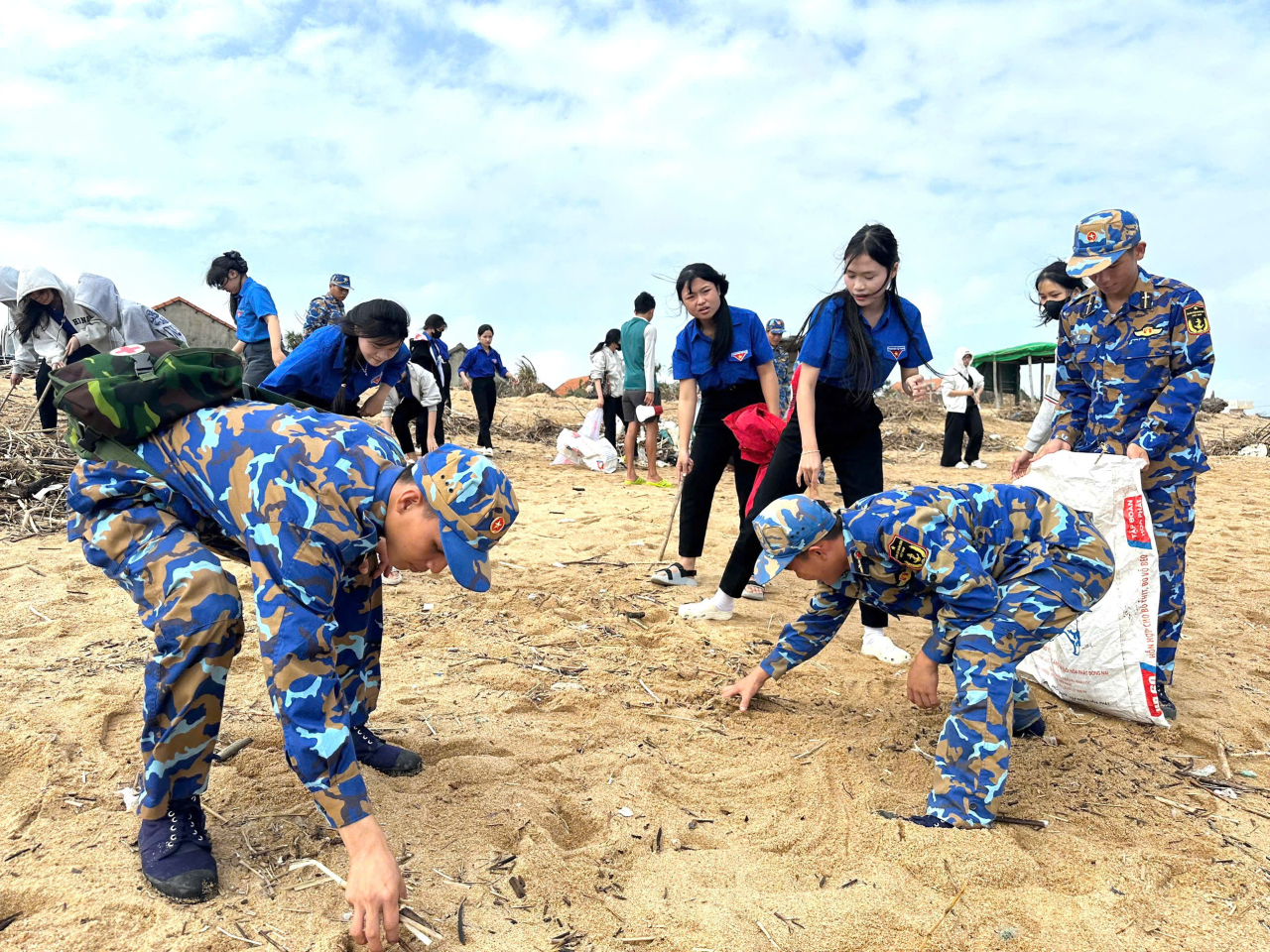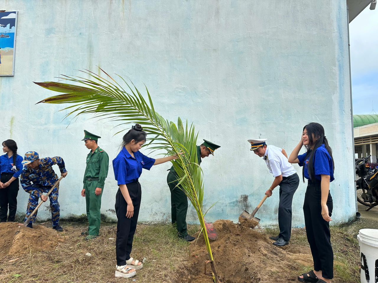 Lữ đoàn còn phối hợp với gần 100 đoàn viên thanh niên phường Hoà Hiệp, tổ chức trồng 100 cây dừa và thu gom, làm sạch bãi biển.