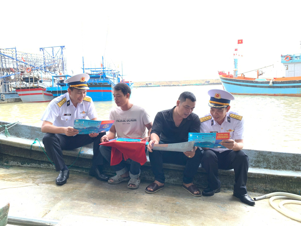 Cán bộ Lữ đoàn hướng dẫn ngư dân khai thác hải sản đúng quy định của pháp luật