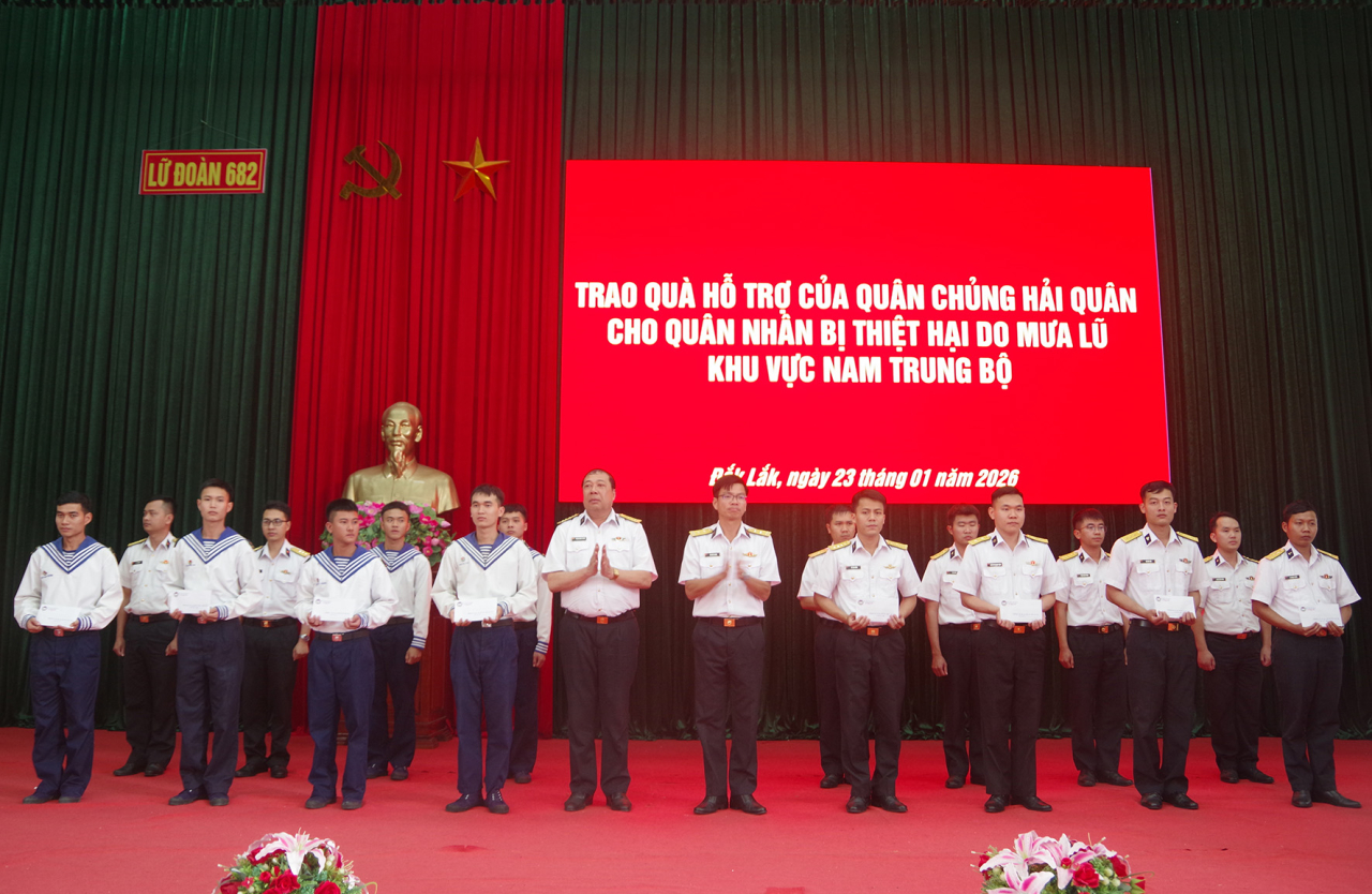 Cũng tại hội nghị, Lữ đoàn 682 đã trao 36 phần quà của Quân chủng Hải quân hỗ trợ gia đình các quân nhân bị thiệt hại do mưa lũ gây ra, đồng thời trao thưởng 5 tập thể có thành tích tiêu biểu trong tham gia Hội thi các chuyên ngành kỹ thuật do Bộ Tư lệnh Vùng 4 Hải quân tổ chức.