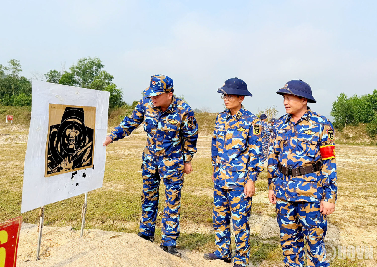 Thượng tá Trương Đức Hiển, Phó Lữ đoàn trưởng, Tham mưu trưởng Lữ đoàn 83 kiểm tra kết quả bắn của CSM