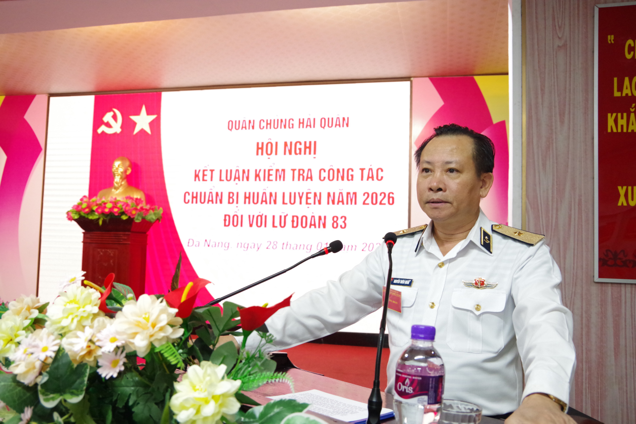 Kết luận kiểm tra, Chuẩn Đô đốc Nguyễn Thiên Quân đã biểu dương kết quả Lữ đoàn 83 đã làm được. Đồng thời yêu cầu Lữ đoàn cần tiếp tục triển khai quyết liệt các mặt công tác, nhanh chóng khắc phục những hạn chế đã chỉ ra; tiếp tục quán triệt, giáo dục nâng cao nhận thức cho bộ đội, đồng thời quản lý chặt chẽ quân số, tư tưởng bộ đội, vũ khí, trang bị kỹ thuật; trước mắt tập trung duy trì nghiêm công tác sẵn sàng chiến đấu trong dịp Tết Nguyên đán; làm tốt công tác chuẩn bị cho lễ ra quân huấn luyện, luyện tập chuyển trạng thái sẵn sàng chiến đấu năm 2026, hướng tới hoàn thành các nội dung, chỉ tiêu huấn luyện trong năm.
