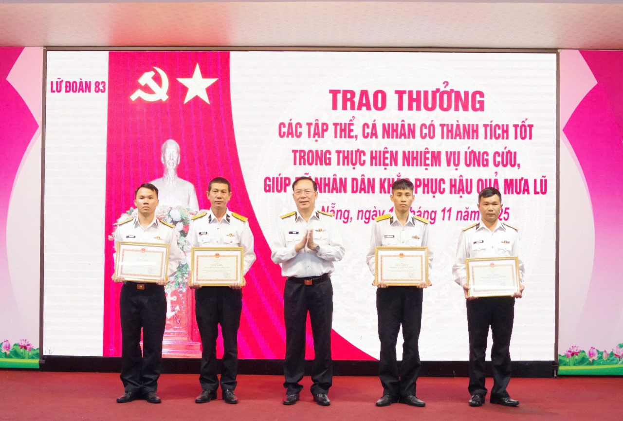 Dịp này, Đảng ủy, chỉ huy Lữ đoàn 83 đã báo cáo tóm tắt kết quả thực hiện nhiệm vụ ứng cứu, hỗ trợ nhân dân khắc phục hậu quả mưa lũ và cơn bão số 13; tặng Giấy khen cho các tập thể, cá nhân có thành tích tốt trong giúp đỡ nhân dân khắc phục hậu quả thiên tai.