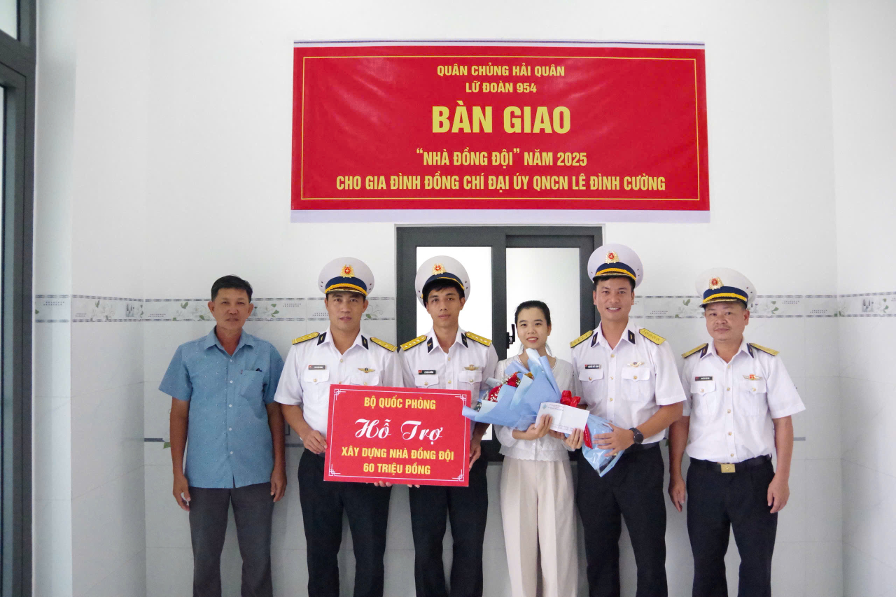 HQ Online - Chiều ngày 7/11, tại phường Bắc Cam Ranh và xã Cam Lâm (tỉnh Khánh Hòa), Lữ đoàn Không quân Hải quân 954 tổ chức lễ bàn giao nhà đồng đội cho 3 quân nhân có hoàn cảnh đặc biệt khó khăn của đơn vị.
