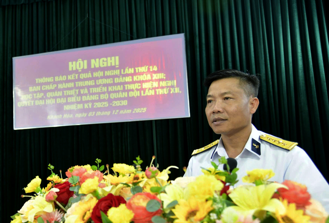 HQ Online - Ngày 3/12, tại phường Bắc Cam Ranh, tỉnh Khánh Hòa, Đảng ủy Lữ đoàn 955, Vùng 4 Hải quân tổ chức Hội nghị thông báo nhanh kết quả Hội nghị lần thứ 14 Ban Chấp hành Trung ương Đảng khóa XIII; học tập, quán triệt và triển khai thực hiện Nghị quyết Đại hội đại biểu Đảng bộ Quân đội lần thứ XII, nhiệm kỳ 2025 – 2030.