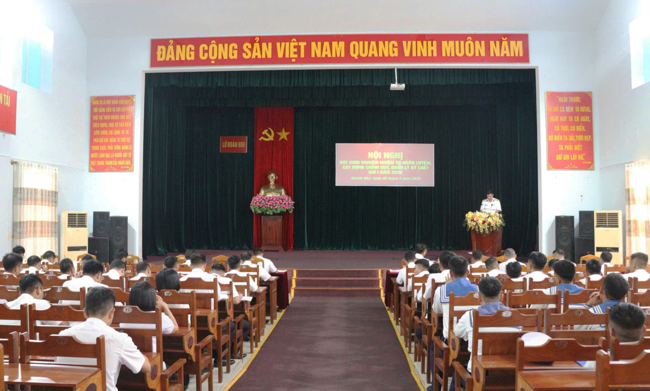 HQ Online - Sáng 6/4, tại phường Bắc Cam Ranh, tỉnh Khánh Hòa, Lữ đoàn 955, Vùng 4 Hải quân tổ chức Hội nghị rút kinh nghiệm nhiệm vụ huấn luyện, xây dựng chính quy, quản lý kỷ luật quý I năm 2026. Thượng tá Nguyễn Đình Quân, Lữ đoàn trưởng chủ trì hội nghị.