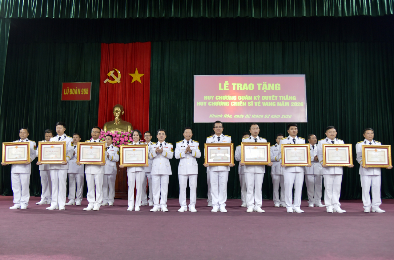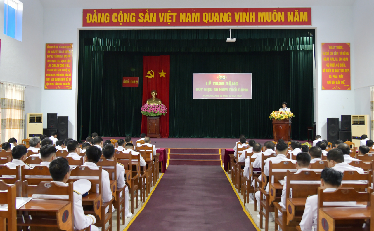 HQ Online - Chiều 2/2, tại Khánh Hòa, Đảng ủy Lữ đoàn 955, Vùng 4 Hải quân tổ chức Lễ trao Huy hiệu 30 năm tuổi Đảng; Huy chương Quân kỳ Quyết thắng, Huy chương Chiến sĩ vẻ vang cho cán bộ, đảng viên, nhân viên trong đơn vị.