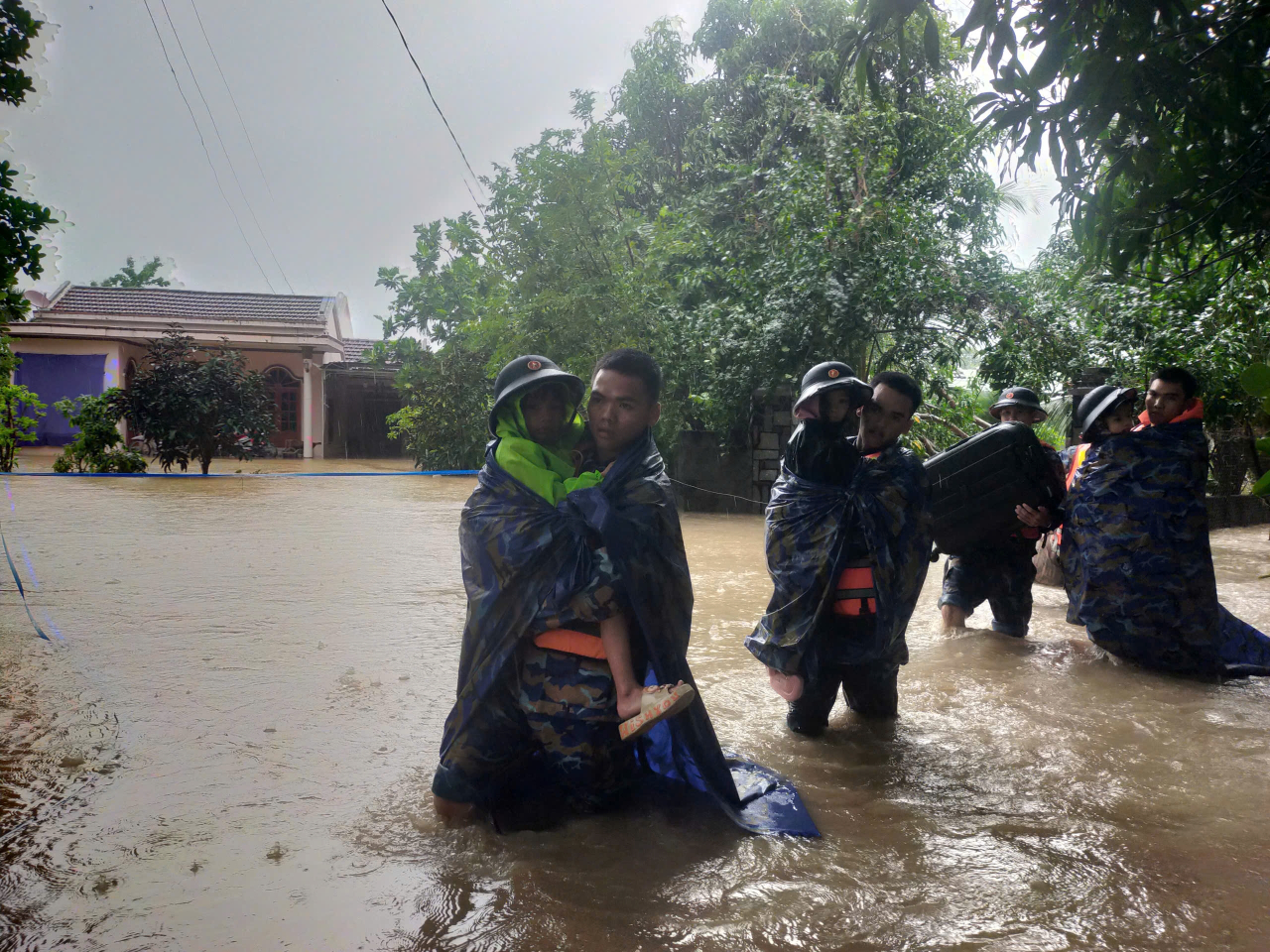 Cán bộ, chiến sĩ Lữ đoàn 957 di dời người dân đến nơi an toàn