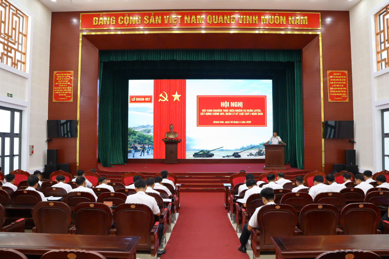 HQ Online - Chiều 6/4, Lữ đoàn 957, Vùng 4 Hải quân tổ chức Hội nghị rút kinh nghiệm việc thực hiện nhiệm vụ huấn luyện, xây dựng chính quy, quản lý kỷ luật quý I năm 2026. Thượng tá Nguyễn Sỹ Sơn, Phó Lữ đoàn trưởng, Tham mưu trưởng chủ trì.
