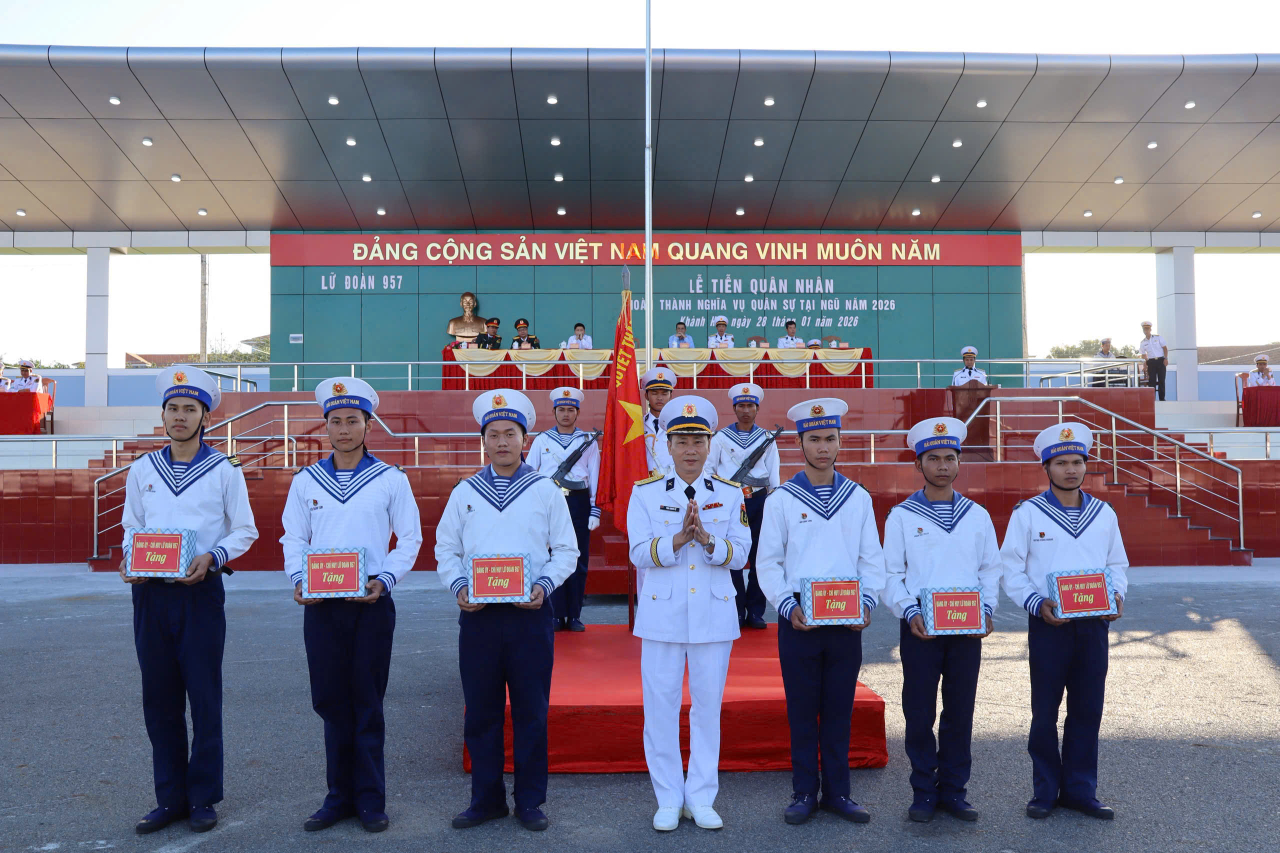 HQ Online - Sáng 28/1, Lữ đoàn 957, Vùng 4 Hải quân tổ chức lễ tiễn hơn 300 hạ sĩ quan, binh sĩ hoàn thành nghĩa vụ quân sự về địa phương.