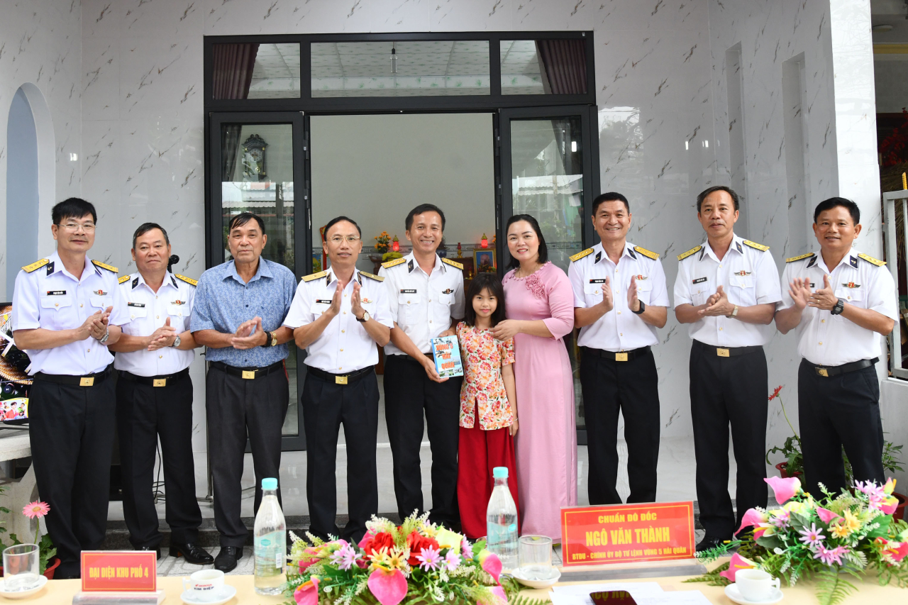 Đồng chí Chính ủy Vùng 5 Hải quân thăm hỏi, động viên gia đình trong ngôi nhà mới